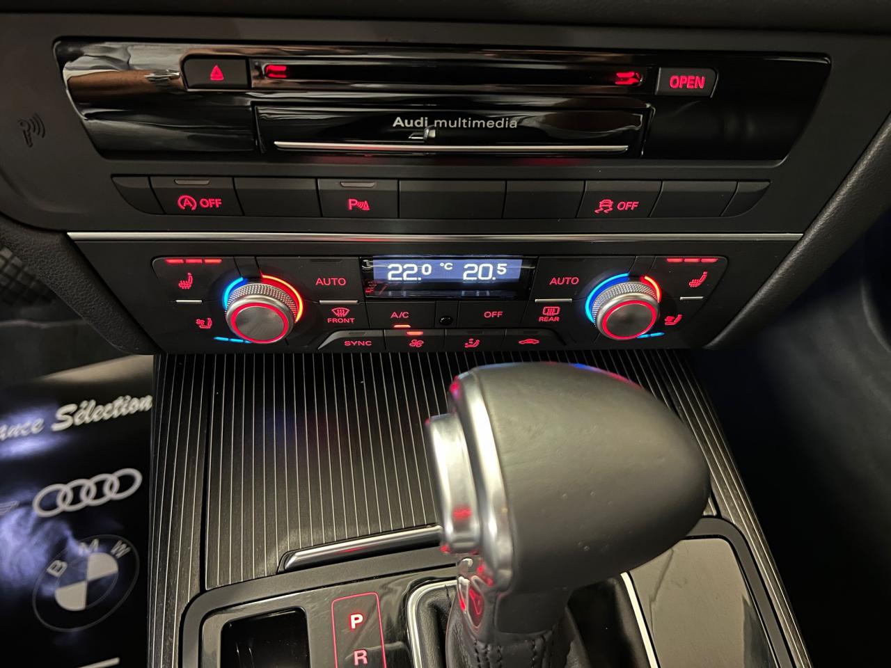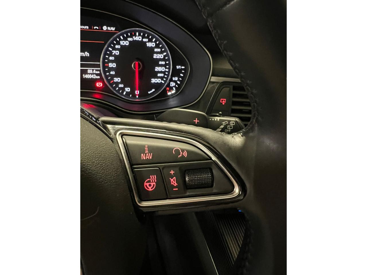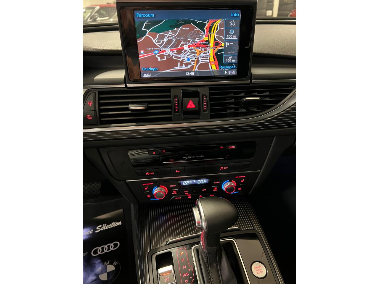 ABS (antiblocage de roue) avec répartiteur de freinage EBV et assistance hydraulique au freinage d'urgenceAccoudoir central arrière, rabattable, avec vide-pochesAccoudoir central avant et arrière en cuirAccoudoir central avant pour conducteur et passager avant, avec 2 porte-boissons intégrésAirbags de têteAirbags frontaux conducteur et passager grand volume, à deux niveaux de gonflement suivant la gravité du choc, latéraux avant et arrière intégrés aux dossiers des siègesApplications aluminium autour des diffuseurs d'air, de l'écran MMI, sur la commande du frein de stationnement électromécanique et les lève-vitresApplications décoratives étendues en frêne veiné brun naturelAppuie-têtes intégraux à l'avant et à l'arrièreASR (antipatinage)Assistance au véhicule basée sur les données de navigationAudi connect (inclut GPS Advanced et préparation téléphone 8W)Audi Drive SelectAudi Hold AssistAudi Music InterfaceAudi Parking System Plus avant et arrièreAudi pre senseAudi Sound System, amplificateur 6 canaux, 10 haut-parleurs incluant un haut-parleur central dans le tableau de bord, un subwoofer dans le logement de la roue de secours,puissance totale 180 WBanquette arrière : trois places, rabattable 40/60Banquette arrière rabattable : système de déverrouillage à distance des dossiers situé dans la garniture latérale du coffreBoîte à gants grand volume, éclairée et verrouillableCalandre Audi Singleframe chromée avec lamelles horizontales laquées noirCapacité du réservoir 75 litresCarrosserie hybride en aluminium (capot moteur, hayon, portières et ailes)Ceintures de sécurité trois points à enrouleur à toutes les places avec prétensionneur réversibleCendrier et allume-cigare éclairés à l'avant et à l'arrièreCiel de pavillon en tissu, en combinaison avec la couleur intérieure choisie, en argent lunaire, beige soie ou noirClignotants avec fonction autoroute : une brève impulsion sur le comodo active 3 cycles de clignotementClimatisation automatique confort avec ventilation indirecteCoffre à bagages grand volume à grande largeur de chargementColonne de direction réglable en hauteur / profondeurContrôle de la pression des pneus avec signaux acoustique et visuel de perte de pressionCouvre-bagages coulissant automatiquement par glissière le long du montant DDémarrage et arrêt du moteur par simple impulsion sur le bouton moteur Start/Stop intégré à la console centrale, nécessite simplement d'avoir la clé sur soiDétecteur de luminositéDétecteur de pluie ; activation automatique des essuie-glaces en cas d'averse ou autre humidité sur le pare-briseDirection électromécanique à assistance variableDouble vérin pneumatique d'ouverture de hayonEclairage intérieur à temporisation à l'avant et à l'arrière avec contacteurs sur toutes les portières, configurable par MMIEclaireurs et catadioptres actifs sur toutes les portièresEcrous antivolEDS (blocage électronique de différentiel)Ergots de maintien pour sacs à provisionsESC (programme électronique de stabilisation)Essuie-glace arrièreFeux de freinage adaptatifs (déclenchement des feux de détresse automatique)Feux stop, feux arrière de recul et antibrouillard halogènes, feux de plaque arrière à LEDFilet de séparation vertical anti-intrusion coffre/habitacleFixations pour sièges enfant ISOFIX aux places extérieures arrièreFrein de stationnement électromécanique avec fonction Hold AssistGestionnaire de batterie, commande à l'aide de capteurs une alimentation électrique optimale du véhicule durant la marche et à l'arrêtGPS AdvancedIdentification du modèle et de la technologie sur la malle arrière ainsi qu'inscription quattro (le cas échéant) sur la calandre et sur le tableau de bord côté passagerInterface BluetoothJantes en aluminium coulé «tridents», 8,5J x 19'', avec pneus 255/40 R19Levier de vitesses en cuir assorti à la couleur intérieure choisieLivre de bord avec étuiLunette arrière dégivrante, avec minuterieMMI TouchOrdinateur de bord couleur 7''Pack EclairagePack RangementPare-Brise feuilleté AthermiquePare-soleil conducteur et passager avant rabattables et orientables avec miroir de courtoisie éclairé et occultablePhares halogènes sous vitre transparente, réglage électrique du site des phares et feux diurnesPréparation pour crochet d'attelageProjecteurs antibrouillard intégrés dans le bouclier avantProjecteurs Xénon Plus incluant lave-phares, feux de jour à LEDProtections latérales anticollisionRécupération d'énergie, générée lors des phases de freinage ou de décélération et système Start/Stop, permettant une économie de carburantRégulateur de vitesseRétroviseur intérieur jour/nuit automatiqueRétroviseurs extérieurs électriques et à mémoires, dégivrants, rabattables et jour/nuit automatiqueRampes de pavillon en aluminium poliRoue de secours temporaire avec cric de levageSécurité enfant sur les portières arrière et les vitres électriques arrièreSellerie cuir MilanoSièges avant à réglages électriques et à mémoires pour siège conducteurSignal sonore pour oubli d'extinction des feuxSorties d'échappement chromées doubles, une à gauche et une à droiteSupports lombaires électriques pour les sièges avantTélécommande de verrouillage centralisé à fréquence radio avec ouverture/fermeture confort pour les vitres électriques, le coffre et la trappe à carburantTéléphone de voiture 8WTémoins de contrôle pour airbags, ESC/ASR, adaptive air suspension, EDS, frein de stationnement électromécanique, régulateur de vitesse, feux de route,feux arrière antibrouillard, clignotants, électronique moteur et protection antidémarrageTapis de sol complémentaires avant et arrière dans la couleur de la moquetteTriangle de présignalisation, trousse de secours et outillage de bordTroisième feu stop intégré au becquet de pavillonVide-poches dans les portières avant ; filets de rangement sur le dossi