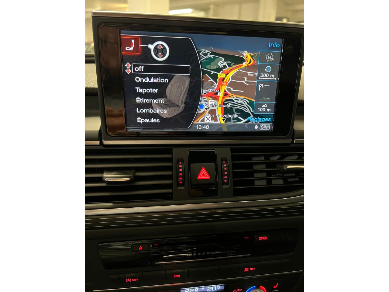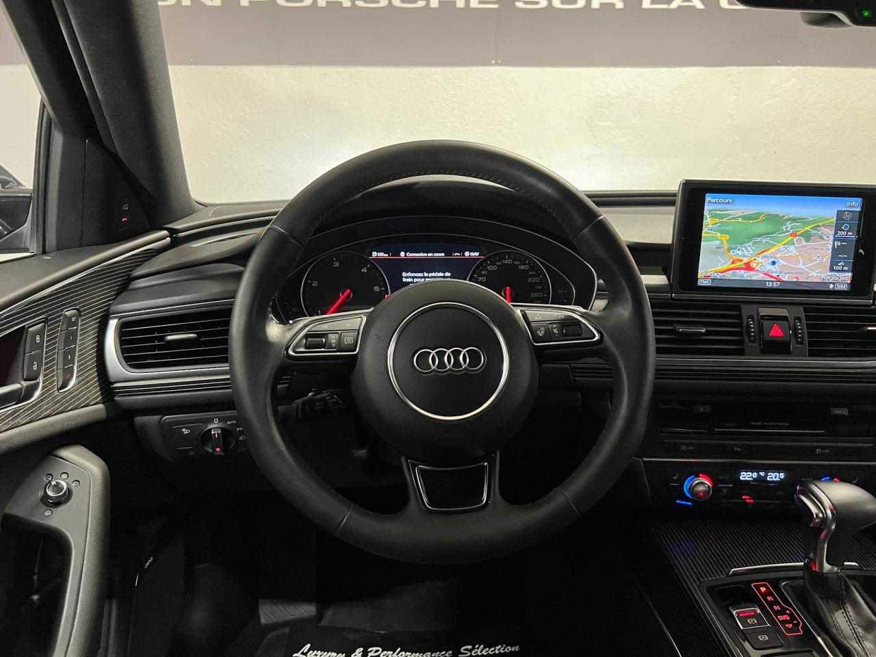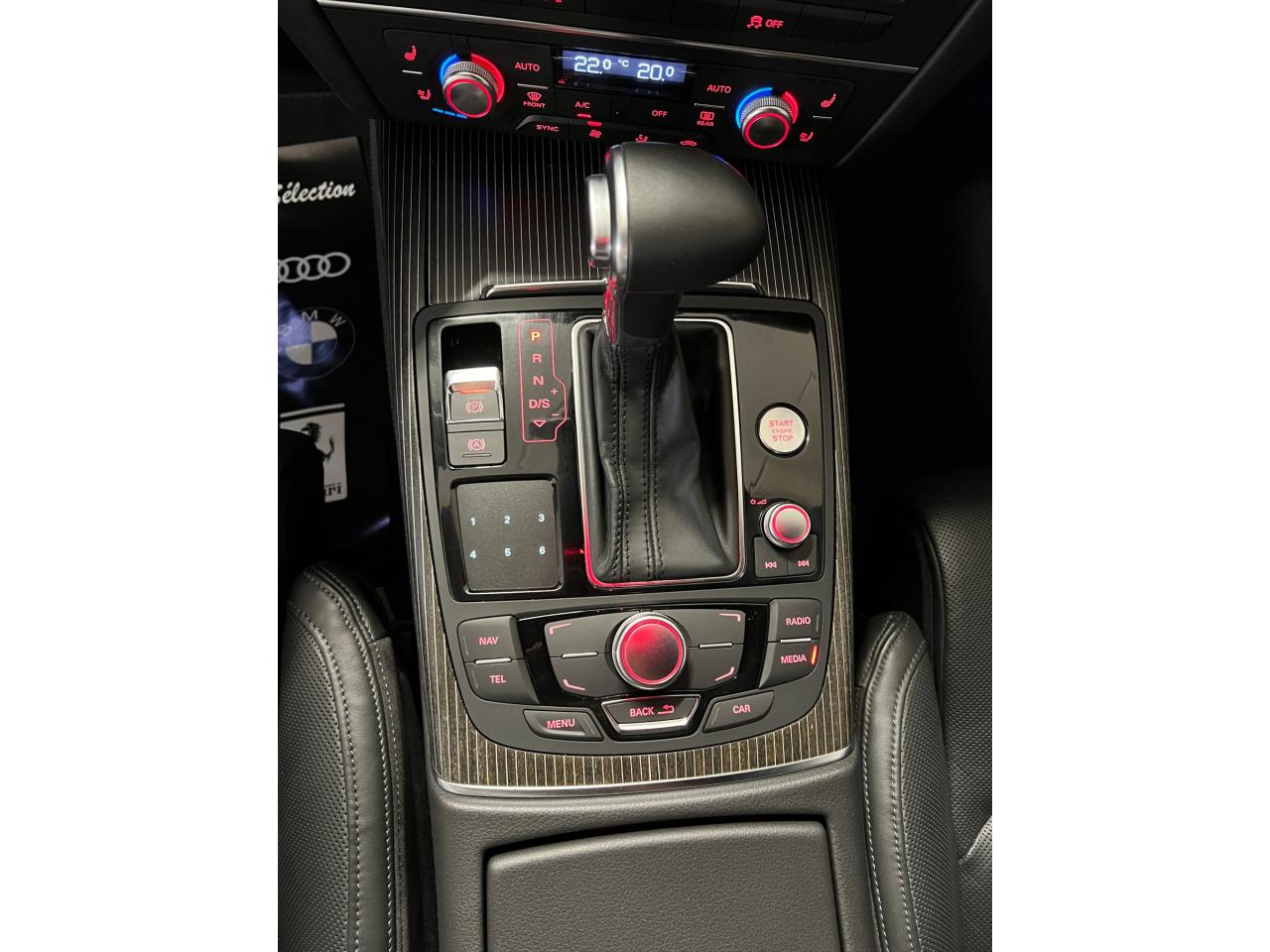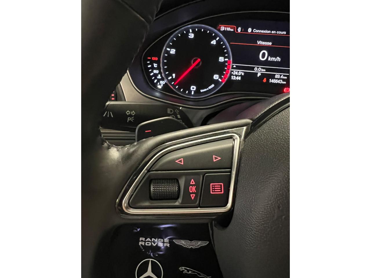 ABS (antiblocage de roue) avec répartiteur de freinage EBV et assistance hydraulique au freinage d'urgenceAccoudoir central arrière, rabattable, avec vide-pochesAccoudoir central avant et arrière en cuirAccoudoir central avant pour conducteur et passager avant, avec 2 porte-boissons intégrésAirbags de têteAirbags frontaux conducteur et passager grand volume, à deux niveaux de gonflement suivant la gravité du choc, latéraux avant et arrière intégrés aux dossiers des siègesApplications aluminium autour des diffuseurs d'air, de l'écran MMI, sur la commande du frein de stationnement électromécanique et les lève-vitresApplications décoratives étendues en frêne veiné brun naturelAppuie-têtes intégraux à l'avant et à l'arrièreASR (antipatinage)Assistance au véhicule basée sur les données de navigationAudi connect (inclut GPS Advanced et préparation téléphone 8W)Audi Drive SelectAudi Hold AssistAudi Music InterfaceAudi Parking System Plus avant et arrièreAudi pre senseAudi Sound System, amplificateur 6 canaux, 10 haut-parleurs incluant un haut-parleur central dans le tableau de bord, un subwoofer dans le logement de la roue de secours,puissance totale 180 WBanquette arrière : trois places, rabattable 40/60Banquette arrière rabattable : système de déverrouillage à distance des dossiers situé dans la garniture latérale du coffreBoîte à gants grand volume, éclairée et verrouillableCalandre Audi Singleframe chromée avec lamelles horizontales laquées noirCapacité du réservoir 75 litresCarrosserie hybride en aluminium (capot moteur, hayon, portières et ailes)Ceintures de sécurité trois points à enrouleur à toutes les places avec prétensionneur réversibleCendrier et allume-cigare éclairés à l'avant et à l'arrièreCiel de pavillon en tissu, en combinaison avec la couleur intérieure choisie, en argent lunaire, beige soie ou noirClignotants avec fonction autoroute : une brève impulsion sur le comodo active 3 cycles de clignotementClimatisation automatique confort avec ventilation indirecteCoffre à bagages grand volume à grande largeur de chargementColonne de direction réglable en hauteur / profondeurContrôle de la pression des pneus avec signaux acoustique et visuel de perte de pressionCouvre-bagages coulissant automatiquement par glissière le long du montant DDémarrage et arrêt du moteur par simple impulsion sur le bouton moteur Start/Stop intégré à la console centrale, nécessite simplement d'avoir la clé sur soiDétecteur de luminositéDétecteur de pluie ; activation automatique des essuie-glaces en cas d'averse ou autre humidité sur le pare-briseDirection électromécanique à assistance variableDouble vérin pneumatique d'ouverture de hayonEclairage intérieur à temporisation à l'avant et à l'arrière avec contacteurs sur toutes les portières, configurable par MMIEclaireurs et catadioptres actifs sur toutes les portièresEcrous antivolEDS (blocage électronique de différentiel)Ergots de maintien pour sacs à provisionsESC (programme électronique de stabilisation)Essuie-glace arrièreFeux de freinage adaptatifs (déclenchement des feux de détresse automatique)Feux stop, feux arrière de recul et antibrouillard halogènes, feux de plaque arrière à LEDFilet de séparation vertical anti-intrusion coffre/habitacleFixations pour sièges enfant ISOFIX aux places extérieures arrièreFrein de stationnement électromécanique avec fonction Hold AssistGestionnaire de batterie, commande à l'aide de capteurs une alimentation électrique optimale du véhicule durant la marche et à l'arrêtGPS AdvancedIdentification du modèle et de la technologie sur la malle arrière ainsi qu'inscription quattro (le cas échéant) sur la calandre et sur le tableau de bord côté passagerInterface BluetoothJantes en aluminium coulé «tridents», 8,5J x 19'', avec pneus 255/40 R19Levier de vitesses en cuir assorti à la couleur intérieure choisieLivre de bord avec étuiLunette arrière dégivrante, avec minuterieMMI TouchOrdinateur de bord couleur 7''Pack EclairagePack RangementPare-Brise feuilleté AthermiquePare-soleil conducteur et passager avant rabattables et orientables avec miroir de courtoisie éclairé et occultablePhares halogènes sous vitre transparente, réglage électrique du site des phares et feux diurnesPréparation pour crochet d'attelageProjecteurs antibrouillard intégrés dans le bouclier avantProjecteurs Xénon Plus incluant lave-phares, feux de jour à LEDProtections latérales anticollisionRécupération d'énergie, générée lors des phases de freinage ou de décélération et système Start/Stop, permettant une économie de carburantRégulateur de vitesseRétroviseur intérieur jour/nuit automatiqueRétroviseurs extérieurs électriques et à mémoires, dégivrants, rabattables et jour/nuit automatiqueRampes de pavillon en aluminium poliRoue de secours temporaire avec cric de levageSécurité enfant sur les portières arrière et les vitres électriques arrièreSellerie cuir MilanoSièges avant à réglages électriques et à mémoires pour siège conducteurSignal sonore pour oubli d'extinction des feuxSorties d'échappement chromées doubles, une à gauche et une à droiteSupports lombaires électriques pour les sièges avantTélécommande de verrouillage centralisé à fréquence radio avec ouverture/fermeture confort pour les vitres électriques, le coffre et la trappe à carburantTéléphone de voiture 8WTémoins de contrôle pour airbags, ESC/ASR, adaptive air suspension, EDS, frein de stationnement électromécanique, régulateur de vitesse, feux de route,feux arrière antibrouillard, clignotants, électronique moteur et protection antidémarrageTapis de sol complémentaires avant et arrière dans la couleur de la moquetteTriangle de présignalisation, trousse de secours et outillage de bordTroisième feu stop intégré au becquet de pavillonVide-poches dans les portières avant ; filets de rangement sur le dossi