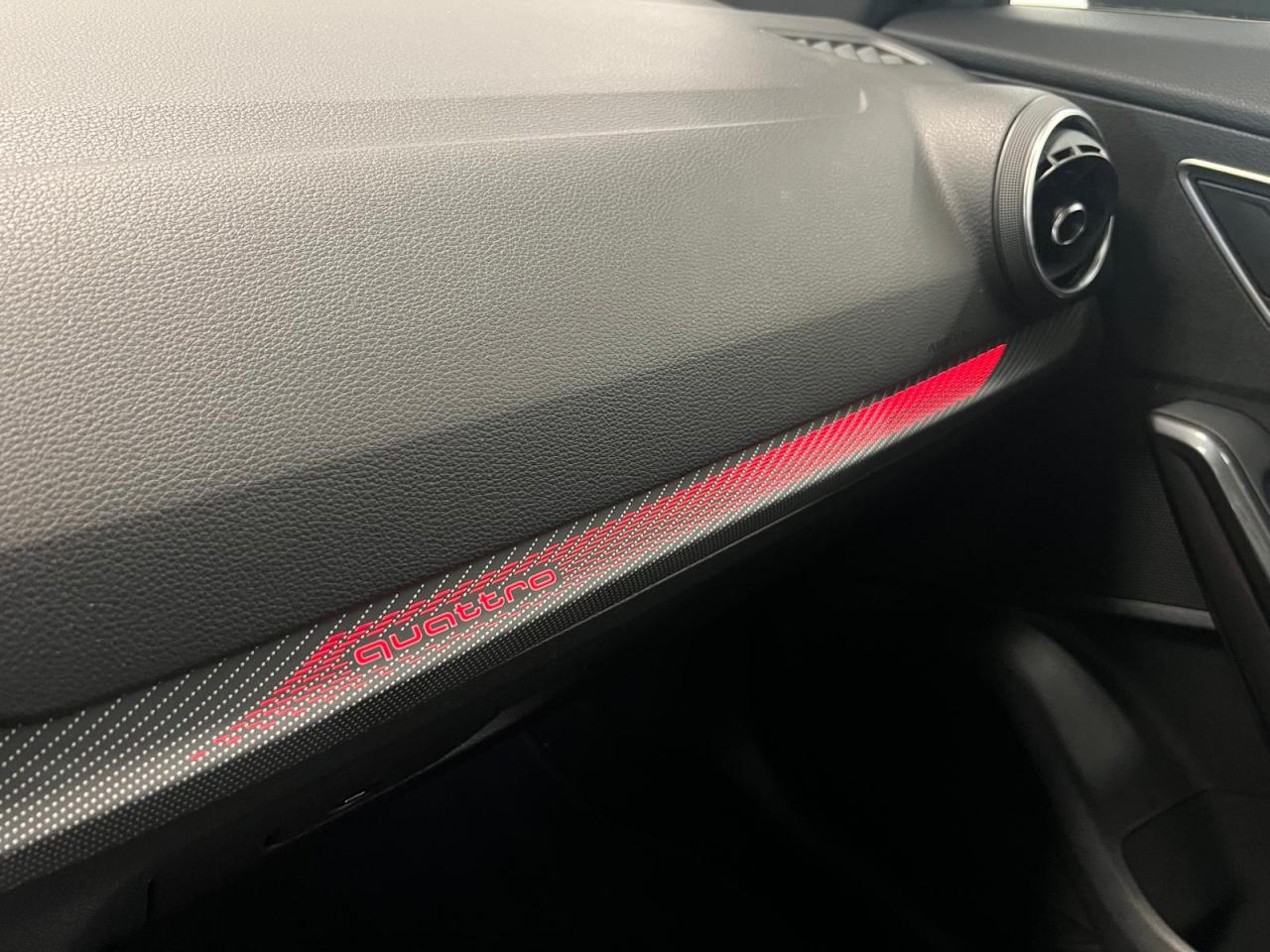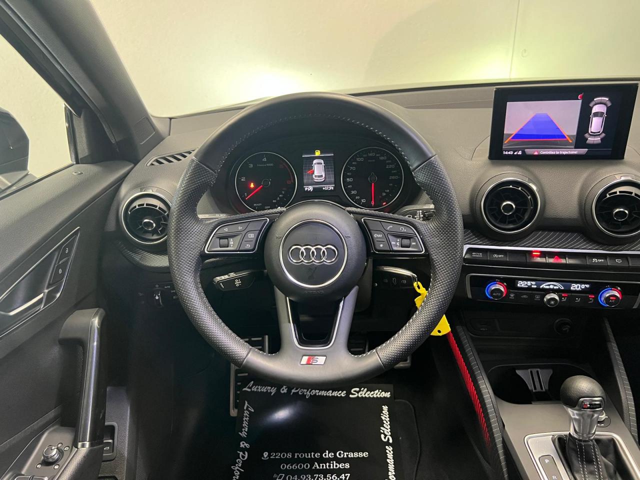 Accoudoir central avantAirbags grand volume pour le conducteur et le passagerAirbags latéraux à l'avant et système d'airbags de têteAllume cigare et cendrierAntipatinage ASR pour une motricité optimale, empêche le patinage des roues motricesApplications décoratives en aluminium brossé matAppuie-tête à l'avant, réglables en hauteurAudi connect 3 moisAudi Drive SelectAudi Music InterfaceAudi Parking System : système acoustique d'aide au stationnement arrièreAudi pre sense frontAudi smartphone interfaceAudi Sound SystemBande grise en haut du pare-briseBlade Argent glacierBlocage électronique de différentiel (EDS)Boîte de vitesses S tronic séquentielle à 7 rapports à double embrayage avec commande électrohydrauliqueBoîtiers de rétroviseurs extérieurs dans la teinte du véhiculeCeinture de sécurité réglable en hauteurCeintures de sécurité 3 points automatiques pour toutes les placesCeintures de sécurité assorties à la couleur des garnituresChâssis “Sport”Châssis DynamiqueCiel de pavillon en tissu noirClimatisation automatiqueColonne de direction de sécuritéContrôle de port de ceinture sur siège conducteur et passager AVContrôle de pression des pneus ( TPMS )Contrôle électronique de stabilité (ESC)Désactivation de l'airbag du passager avantDétecteur de pluie et allumage automatique des projecteursDéverrouillage de coffre par touche douce : déverrouillage avec assistance électriqueDirection assistée électromécaniqueDirection progressiveDispositif anti-erreur de carburantDossier de banquette arrière rabattable en deux parties , 1/3, 2/3 ou complétementEclairage intérieur, à temporisation avec contacteurs sur toutes les portières ; éclairage du coffreEcrous antivolFeux arrière rouges, avec feux de recul blancs et feux de brouillard arrière intégrés, feux de plaque arrière à LED ; incluant troisième feu stop surélevéFixation pour sièges enfants ISOFIX et Top Tether pour les places arrière extérieuresFrein de stationnement electromécaniqueFreins à disque à l'avant et à l'arrièreIdentification du modèle/technologie sur le capot de coffre ; sur demande sans identification du modèle à l'arrièreInscription “S line” sur les ailes avantInscription quattro sur la calandre, le capot de coffre et le tableau de bord côté passagerInterface BluetoothJantes en aluminium coulé style 5 branches en Y,7 J x 18 avec pneus 215/50 R 18Lave-pharesMMI navigationMoulures de seuils avec insert en aluminium et emblème S, éclairéesOutillage de bord et cricPare-soleil avec miroirs de courtoisiePédales et repose-pied en acier inoxydablePeinture intégralePhares à LED avec clignotants arrière à LED dynamiquesPommeau du levier/sélecteur de vitesses en cuir perforé noirProtection antidémarrage électronique, intégrée à la gestion du moteur, activation automatique par la clé du véhiculeQuattro : transmission intégrale permanente avec répartition asymétrique et dynamique de coupleRécupération d'énergie, générée lors des phases de freinage ou de décélération permettant une économie de carburantRégulateur de vitesseRepose-genoux et diffuseurs d'air laquésRéservoir AdBlue de 12 LRétroviseurs extérieur rabattables automatiquementRétroviseurs extérieurs avec clignotants à LED intégrésRétroviseurs extérieurs réglables et escamotables électriquement, dégivrants des deux côtés et buses de lave-glaces dégivrantesRoue de secours à encombrement réduitSécurité enfantsSellerie S line en tissu Pulse/cuir noirSièges avant réglables manuellement en hauteur et en profondeurSièges avant sportSortie d'échappement avec embout chroméSorties d'échappement monoflux avec 2 sorties à gaucheSurpiqûres contrastées sur les selleries, volant Sport en cuir, soufflet de levier/sélecteur de vitesses ainsi que tapis complémentairesSuspension sportSystème d'information du conducteur avec écran couleurSystème Start/Stop désactivableTapis complémentaires à l'avant et à l'arrièreTriangle de pré-signalisationTrousse de secoursVide-pochesVitres électriques avant et arrièreVitres latérales et arrière athermiqueVolant réglable manuellement en hauteur et en profondeurVolant Sport S line en cuir style 3 branches avec multifonction avec emblème S (poignées de volant en cuir perforé)