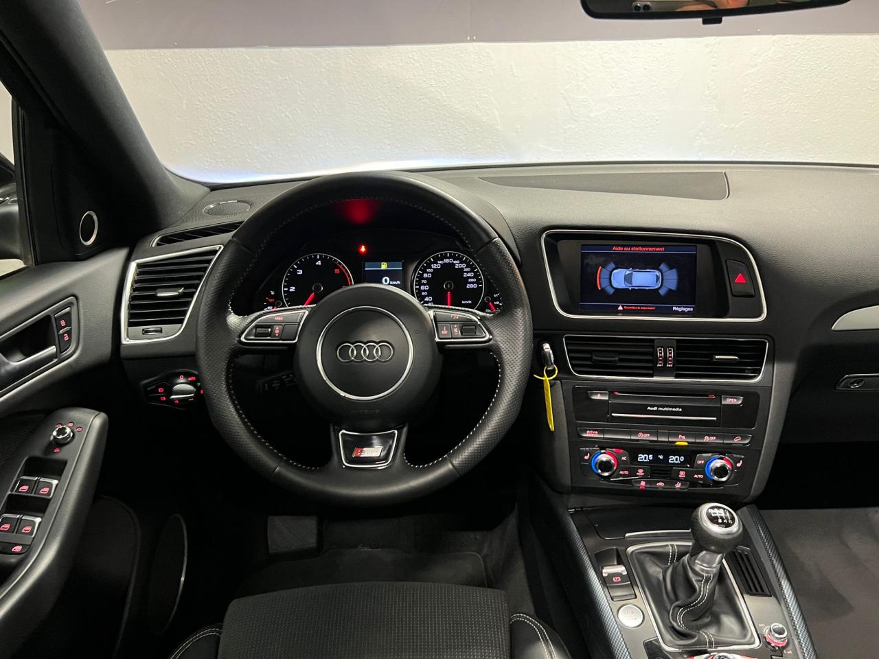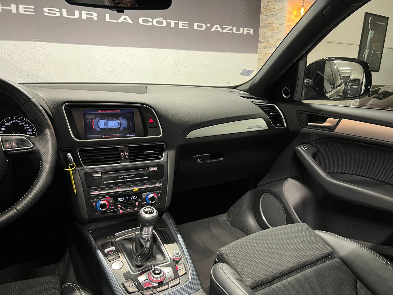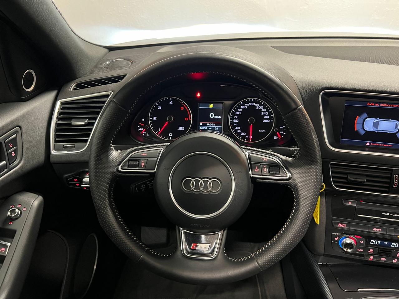 Étui à lunettes, dans le module d'éclairage intérieur avant, au-dessus du rétroviseur intérieurAccoudoir central à l'avant, pour conducteur et passager avant, coulissant en longueur de 65 mm, inclinaison réglable rabattable, avec vide-poches sous l'accoudoir central, incluant deux porte-boissons et prise de 12 V dans la console centraleAccoudoir central avant avec vide-poches et 2 prises 12 VAccoudoir central dans le dossier des sièges arrière, rabattableAirbag grand volume pour le conducteur et le passager avant avec détection de la position du siège, airbags adaptatifs pour le conducteur et le passager avantAirbags latéraux (airbag thorax et bassin à l'avant)Anti-démarrage électronique intégré à la commande du moteur ; activation automatique par la clé du véhiculeAntipatinage électronique ASR : pour une bonne traction, empêche le patinage des roues motricesApplications décoratives S line en aluminium brossé matAppuie-têtes, réglables à l'avant et à l'arrièreAudi BackguardAvertisseur deux tons sur le moyeu du volantBanquette arrière rabattable 60/40, déverrouillage à distance des dossiers via un levier dans la garniture latérale du coffreBecquet de pavillonCarrosserie galvaniséeCeintures de sécurité : ceintures trois points à enrouleur pour tous les sièges, avec contrôle du port à l'avant, assorties à la couleur de l'habitacleCendrier dans la console centrale à l'avant et à l'arrière, allume-cigare à l'avantChâssis DynamiqueChangeur 6 CD/MP3/WMA pour GPS PlusChargeur 6 CDCiel de pavillon en tissu noirClimatisation automatique Confort PlusColonne de direction de sécurité : complète le potentiel de protection de la ceinture de sécurité et de l'airbagConsole centrale, surélevée, avec compartiment de rangement et volet roulantContact d'allumage électronique, clé de contact mémorisant différentes données d'entretienContrôle électronique de stabilisation ESC 8.1 avec détection de barres de toitContrôle de la pression des pneusDétecteur de pluie et de luminosité incluant rétroviseur intérieur jour/nuit automatiqueDéverrouillage de coffre par touche douce : déverrouillage avec assistance électriqueDirection assistée électromécanique, direction à crémaillère sans entretien avec asistance asservie à la vitesseEclairage intérieur, à temporisation avec contacteur sur toutes les portièresEcran 6,5 pouces couleur intégré au tableau de bord, pour l'affichage des fonctions de la radio, de la climatisation et des fonctions du menu du véhicule, ainsi que de l'heureEcran central avec affichage monochromeEcrous de roues antivol ; ne s'enlèvent qu'au moyen de l'adaptateur fourniEssuie-glace arrière, avec lavage-balayage automatique, balayage au passage de la marche arrière pendant la durée de celle-ci (quand les essuie-glace avant sont activés)Essuie-glace deux vitesses : réglage d'intermittence sur 4 niveaux, commande de balayage coup par coup, lavage-balayage automatiqueFeux arrière, rouges, avec feux de recul blancs, feux arrière de brouillard intégrés, avec capot de coffre ouvert : fonction feux arrière dans le bandeau d'éclairage du pare-chocsFilet de séparation, vertical, amovibleFrein de stationnement électromécanique : comprend la fonction de frein de secours sur les quatre roues durant la marcheGPS PlusHill Descent Control (HDC) : contrôle de descente qui permet de maintenir une vitesse stabilisée entre 9 km/h et 30 km/h. Possibilité d'activer le système jusqu'à 60 km/hIdentification du modèle à l'arrière, inscription “quattro” à l'arrière, sur la calandre et sur le tableau de bord côté passager avant ; sur demande sans identification du modèleIndicateur de rapport de vitesse dans le système d'information du conducteur : apporte assistance au conducteur dans le choix du rapport de vitesse adaptéIndication de l'usure des garnitures de frein à l'avant ; affichage sur l'écran centralInscription “S line” sur les ailes avantInstrumentation, avec éclairage réglableInterface BluetoothJantes en aluminium coulé style 5 branches, 9 J x 19”, avec pneus 235/55 R 19Lève-vitres électriques à l'avant et à l'arrière avec protection antipincement et fonction ouverture/fermeture Confort par impulsionLave-phares haute pressionLimiteurs d'effort sur les ceintures de sécurité avantLunette arrière dégivrante avec minuterieMiroir de courtoisieMoulures de seuil avec inscription S line, protection du seuil de chargement supplémentaire en acier inoxydableMoulures de seuils avec inscription S line, protection du seuil de chargement supplémentaire en acier inoxydableOEilletons de fixation, quatre oeilletons dans le coffre pour arrimer le chargementOrdinateur de bord couleur et système de contrôle AutocheckOutillage de bord dans le coffrePack Aluminium extérieurPare-chocs, laqués dans la couleur de carrosserie, bas de pare-chocs avant et arrière ainsi que bandeaux de portières en bas, noir, matPare-soleil, rabattables et pivotants, côté conducteur et passager avantParking System arrièrePhares antibrouillard intégrés dans le bouclier avantPhares halogènes à surfaces libres sous vitre transparentePoignées de maintien avec mécanisme amortisseur : quatre poignées encastrées dans le ciel de pavillonPoignées de portes couleur carrosseriePommeau de levier de vitesses en cuir perforéPorte-boissons double dans la console centralePréparation pour crochet d'attelagePréparation pour siège enfant ISOFIX pour sièges latéraux arrièrePrétensionneurs des ceintures de sécurité avantProjecteurs antibrouillardProjecteurs Xénon Plus incluant lave-phares, feux de jour à LEDQuattro, transmission intégrale permanente avec répartition asymétrique et dynamique de couple, différentiel central autobloquant, blocage électronique de différentiel EDS par intervention sur les freins des roues motricesRégulateur de vitesseRéservoir avec protection contre les erreurs de ravitaillementR