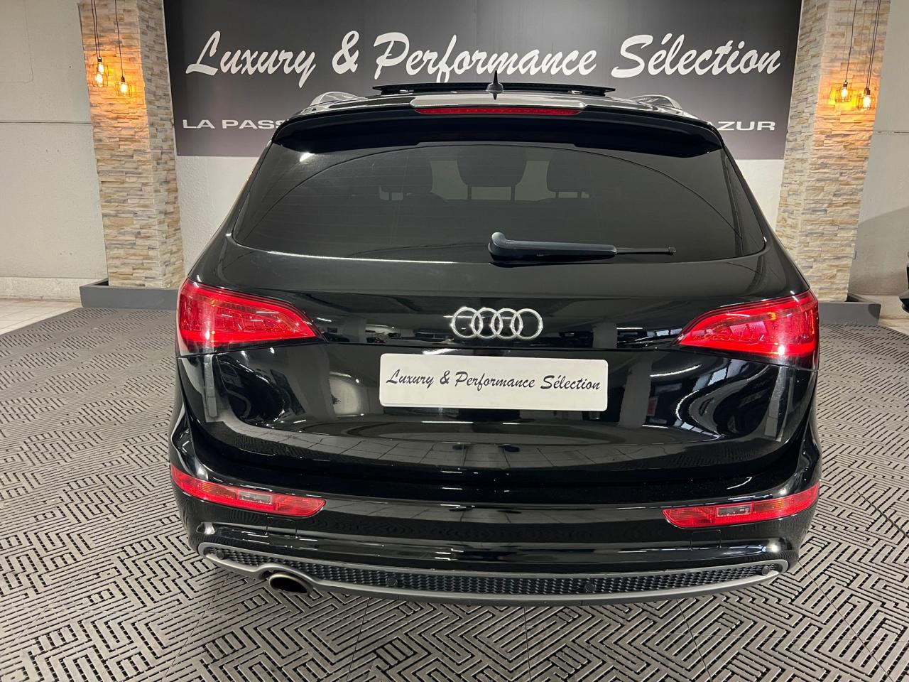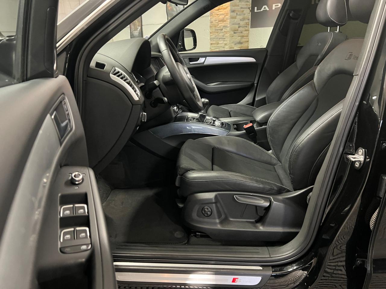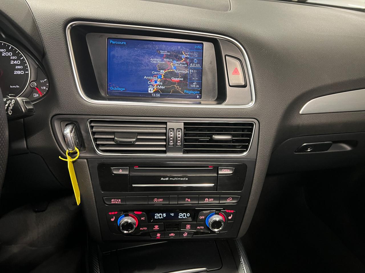 Étui à lunettes, dans le module d'éclairage intérieur avant, au-dessus du rétroviseur intérieurAccoudoir central à l'avant, pour conducteur et passager avant, coulissant en longueur de 65 mm, inclinaison réglable rabattable, avec vide-poches sous l'accoudoir central, incluant deux porte-boissons et prise de 12 V dans la console centraleAccoudoir central avant avec vide-poches et 2 prises 12 VAccoudoir central dans le dossier des sièges arrière, rabattableAirbag grand volume pour le conducteur et le passager avant avec détection de la position du siège, airbags adaptatifs pour le conducteur et le passager avantAirbags latéraux (airbag thorax et bassin à l'avant)Anti-démarrage électronique intégré à la commande du moteur ; activation automatique par la clé du véhiculeAntipatinage électronique ASR : pour une bonne traction, empêche le patinage des roues motricesApplications décoratives S line en aluminium brossé matAppuie-têtes, réglables à l'avant et à l'arrièreAudi BackguardAvertisseur deux tons sur le moyeu du volantBanquette arrière rabattable 60/40, déverrouillage à distance des dossiers via un levier dans la garniture latérale du coffreBecquet de pavillonCarrosserie galvaniséeCeintures de sécurité : ceintures trois points à enrouleur pour tous les sièges, avec contrôle du port à l'avant, assorties à la couleur de l'habitacleCendrier dans la console centrale à l'avant et à l'arrière, allume-cigare à l'avantChâssis DynamiqueChangeur 6 CD/MP3/WMA pour GPS PlusChargeur 6 CDCiel de pavillon en tissu noirClimatisation automatique Confort PlusColonne de direction de sécurité : complète le potentiel de protection de la ceinture de sécurité et de l'airbagConsole centrale, surélevée, avec compartiment de rangement et volet roulantContact d'allumage électronique, clé de contact mémorisant différentes données d'entretienContrôle électronique de stabilisation ESC 8.1 avec détection de barres de toitContrôle de la pression des pneusDétecteur de pluie et de luminosité incluant rétroviseur intérieur jour/nuit automatiqueDéverrouillage de coffre par touche douce : déverrouillage avec assistance électriqueDirection assistée électromécanique, direction à crémaillère sans entretien avec asistance asservie à la vitesseEclairage intérieur, à temporisation avec contacteur sur toutes les portièresEcran 6,5 pouces couleur intégré au tableau de bord, pour l'affichage des fonctions de la radio, de la climatisation et des fonctions du menu du véhicule, ainsi que de l'heureEcran central avec affichage monochromeEcrous de roues antivol ; ne s'enlèvent qu'au moyen de l'adaptateur fourniEssuie-glace arrière, avec lavage-balayage automatique, balayage au passage de la marche arrière pendant la durée de celle-ci (quand les essuie-glace avant sont activés)Essuie-glace deux vitesses : réglage d'intermittence sur 4 niveaux, commande de balayage coup par coup, lavage-balayage automatiqueFeux arrière, rouges, avec feux de recul blancs, feux arrière de brouillard intégrés, avec capot de coffre ouvert : fonction feux arrière dans le bandeau d'éclairage du pare-chocsFilet de séparation, vertical, amovibleFrein de stationnement électromécanique : comprend la fonction de frein de secours sur les quatre roues durant la marcheGPS PlusHill Descent Control (HDC) : contrôle de descente qui permet de maintenir une vitesse stabilisée entre 9 km/h et 30 km/h. Possibilité d'activer le système jusqu'à 60 km/hIdentification du modèle à l'arrière, inscription “quattro” à l'arrière, sur la calandre et sur le tableau de bord côté passager avant ; sur demande sans identification du modèleIndicateur de rapport de vitesse dans le système d'information du conducteur : apporte assistance au conducteur dans le choix du rapport de vitesse adaptéIndication de l'usure des garnitures de frein à l'avant ; affichage sur l'écran centralInscription “S line” sur les ailes avantInstrumentation, avec éclairage réglableInterface BluetoothJantes en aluminium coulé style 5 branches, 9 J x 19”, avec pneus 235/55 R 19Lève-vitres électriques à l'avant et à l'arrière avec protection antipincement et fonction ouverture/fermeture Confort par impulsionLave-phares haute pressionLimiteurs d'effort sur les ceintures de sécurité avantLunette arrière dégivrante avec minuterieMiroir de courtoisieMoulures de seuil avec inscription S line, protection du seuil de chargement supplémentaire en acier inoxydableMoulures de seuils avec inscription S line, protection du seuil de chargement supplémentaire en acier inoxydableOEilletons de fixation, quatre oeilletons dans le coffre pour arrimer le chargementOrdinateur de bord couleur et système de contrôle AutocheckOutillage de bord dans le coffrePack Aluminium extérieurPare-chocs, laqués dans la couleur de carrosserie, bas de pare-chocs avant et arrière ainsi que bandeaux de portières en bas, noir, matPare-soleil, rabattables et pivotants, côté conducteur et passager avantParking System arrièrePhares antibrouillard intégrés dans le bouclier avantPhares halogènes à surfaces libres sous vitre transparentePoignées de maintien avec mécanisme amortisseur : quatre poignées encastrées dans le ciel de pavillonPoignées de portes couleur carrosseriePommeau de levier de vitesses en cuir perforéPorte-boissons double dans la console centralePréparation pour crochet d'attelagePréparation pour siège enfant ISOFIX pour sièges latéraux arrièrePrétensionneurs des ceintures de sécurité avantProjecteurs antibrouillardProjecteurs Xénon Plus incluant lave-phares, feux de jour à LEDQuattro, transmission intégrale permanente avec répartition asymétrique et dynamique de couple, différentiel central autobloquant, blocage électronique de différentiel EDS par intervention sur les freins des roues motricesRégulateur de vitesseRéservoir avec protection contre les erreurs de ravitaillementR