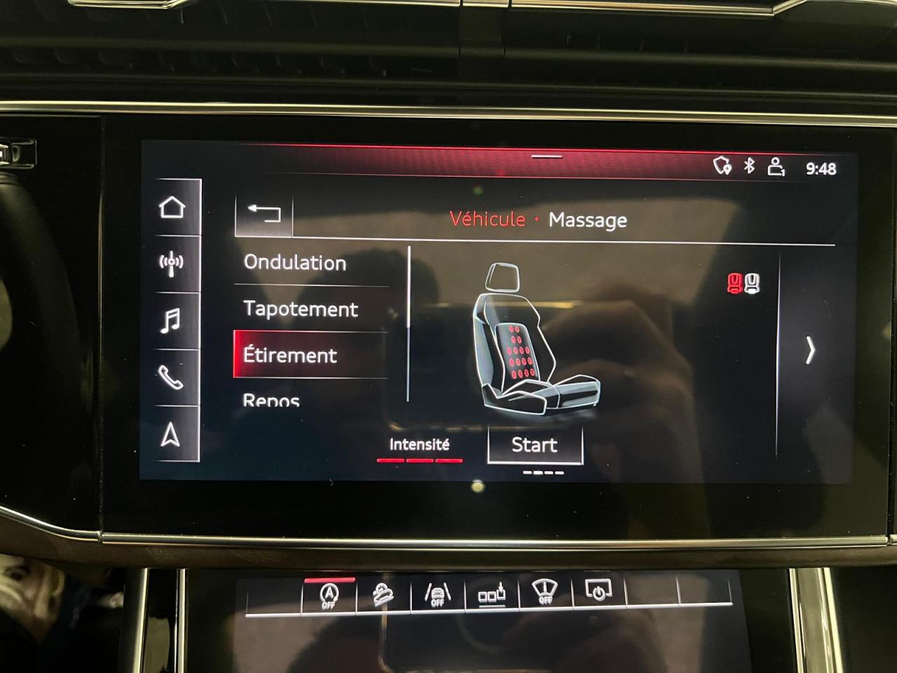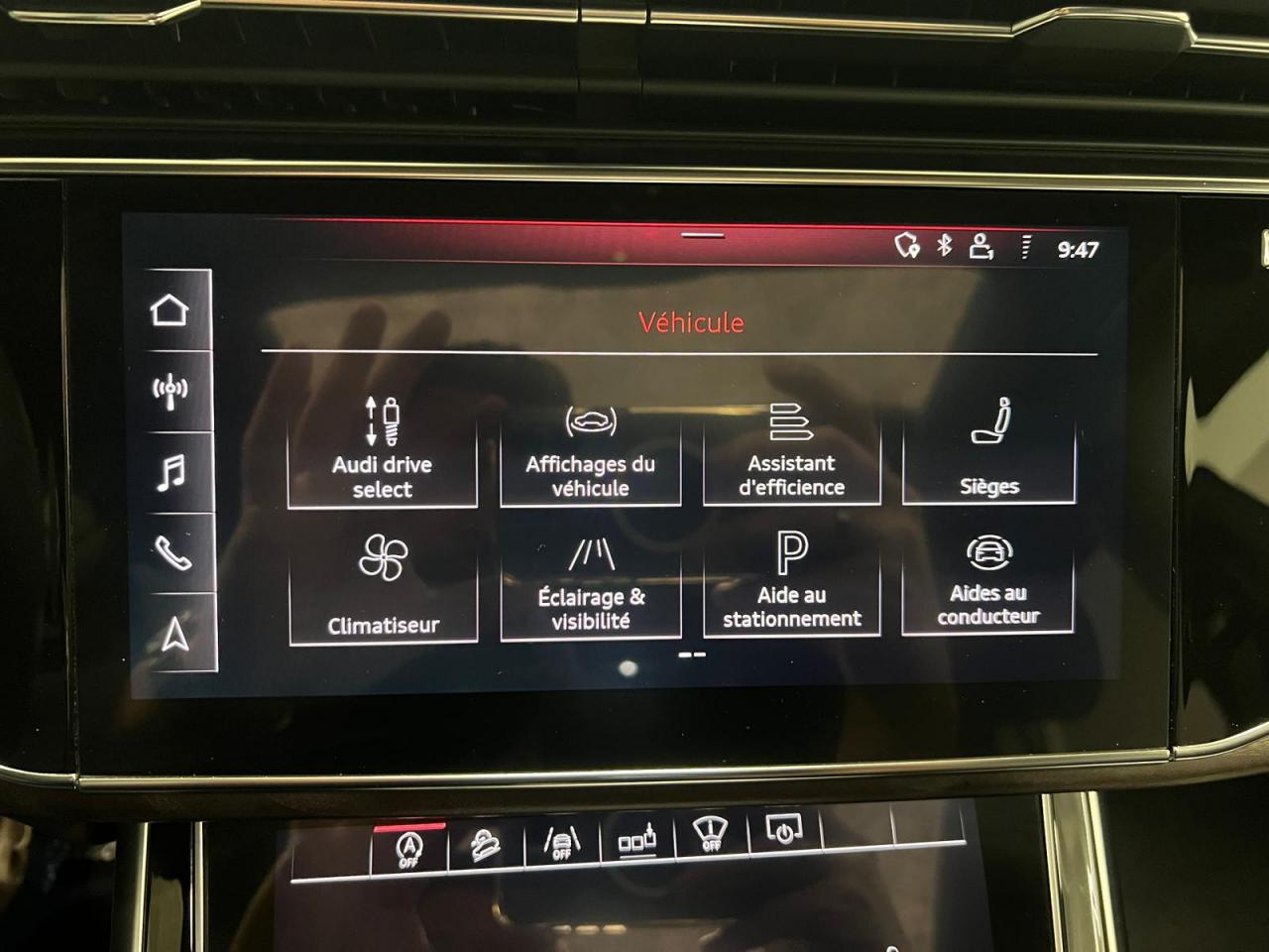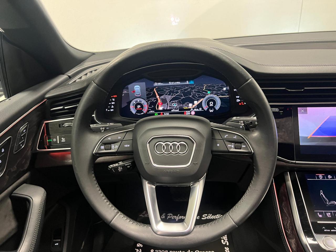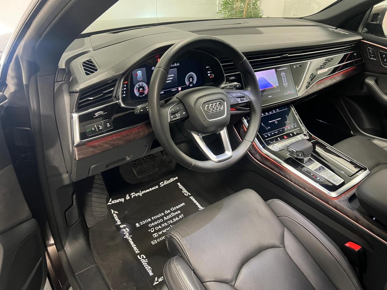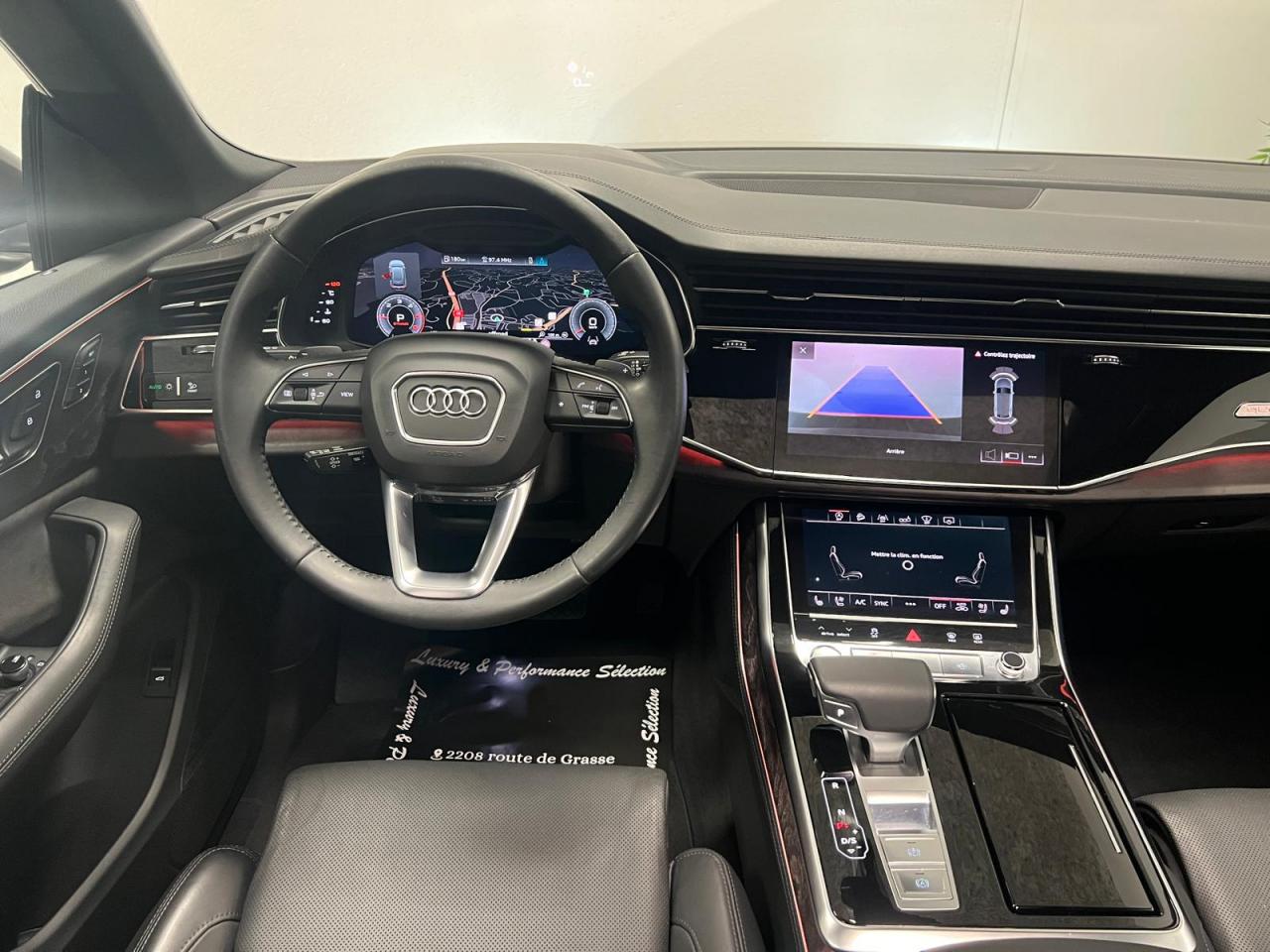 Accoudoir central arrièreÉléments de l’habitacle inférieurs en cuirAccoudoir central confort à l'avantAffichage du contrôle de la pression des pneumatiquesAffichage tête haute HUDAirbags latéraux à l'avant et système d'airbags de têteAppel d’urgence et service Audi connect incluant commande du véhiculeApplications décoratives en frêne veiné gris-brun naturelAppuie-tête pour sièges avant réglables manuellement en hauteurAssistant de feux de routeAudi connect avec carte SIM intégrée (e-SIM) et licence d'utilisation pour 3 ansAudi Drive SelectAudi Music Interface à l'arrièreAudi music interface (avant)Audi Parking System PlusAudi Phone BoxAudi pre sense frontAudi smartphone interfaceAudi virtual cockpitAugmentation de la capacité du réservoir d'AdBlue à 24 litresAvertisseur de franchissement de ligneBanquette arrière à dossier rabattable et modulable séparément (40/20/40)Buses de lave-glace chauffantesCaméra de reculCaméra multifonction pour système d'assistance à la conduiteChâssis pour un confort de conduite accru avec une excellente dynamiqueCiel de pavillon en tissu Argent lunaireClé à fréquence radioClé confort avec déverrouillage du coffre commandé par capteur et cache-bagages électriqueClimatisation automatique confort 4 zonesCommande de désactivation d'airbag passager avantDirection progressiveDossiers de banquette AR réglables en inclinaisonEcrous de roues antivol et indicateur de desserrage d’écrousFeux arrière à technologie LEDFixation pour sièges enfants ISOFIX et Top Tether pour les places arrière extérieuresFixation pour sièges enfants ISOFIX pour le siège passager avant avec commande de sécurité enfant électrique sur les portières arrièreGilet, triangle et trousse de secoursHayon de coffre à ouverture et fermeture électriquesIdentification du modèle avec inscription de la puissance/technologieInterface BluetoothJantes en aluminium coulé style 5 bras 9 J x 20"Lave-phares haute pressionMasque de calandre couleur carrosserieMotorisations avec technologie hybride léger (Mild Hybrid)Moulures de seuil avec insert en aluminium à l’avant et à l’arrièreNavigation MMI plus avec MMI touch responseOutillage de bord et cricPack Assistance pour la villePack Eclairage intérieur à LEDPack Extérieur BrillancePack RangementPare-Brise feuilleté AthermiquePeinture bumperPrise allume-cigare et cendrier à l'avantProjecteurs Full LEDProtection antidémarrage électroniqueRégulateur et limiteur de vitesseRéservoir à carburant de 85 litresRétroviseur intérieur à position nuit automatique, sans encadrementRétroviseurs extérieurs couleur carrosserieRétroviseurs extérieurs réglables,dégivrants,rabattables électriquement avec Fonction jour/nuit automatique des deux côtés,fonction mémoire ,rabat automatique pour le rétroviseur extérieur côté passager avant (manoeuvrSellerie en cuir CricketServices en ligne Audi connect pour Navigation et InfotainmentSet de réparations pour pneusSièges avant à réglages électrique, siège conducteur à mémoireSièges avant chauffantsSièges normaux à l’avantSystème audiophonique AudiSystème de localisation antivol Audi connectVitrage acoustique pour les vitres latérales, meilleure isolation phonique grâce au double vitrageVitres athermiques sur les côtés et à l’arrière lunette arrière dégivrante, avec minuterieVolant en cuir à 3 branches à palettesVolant réglable électriquement