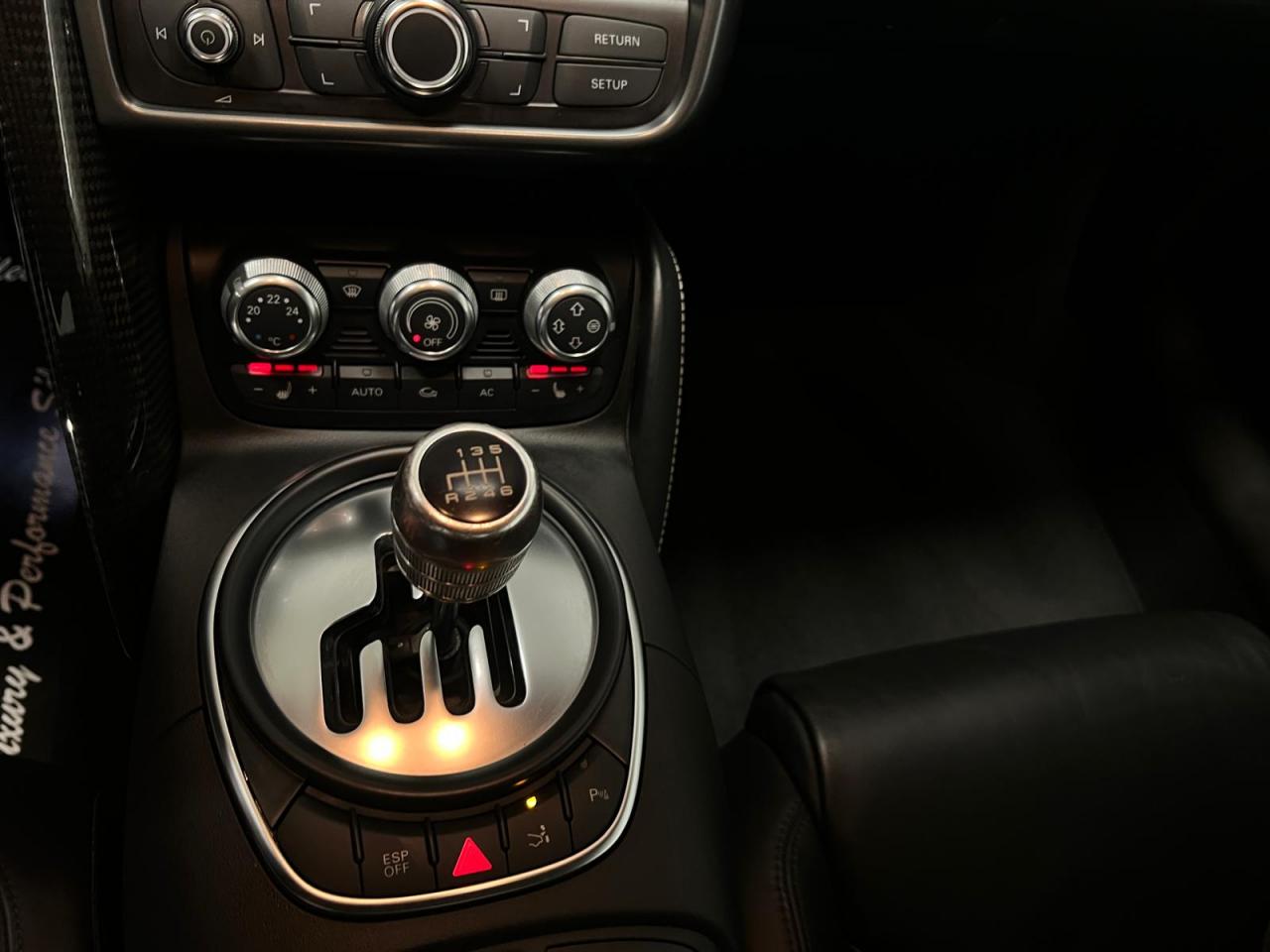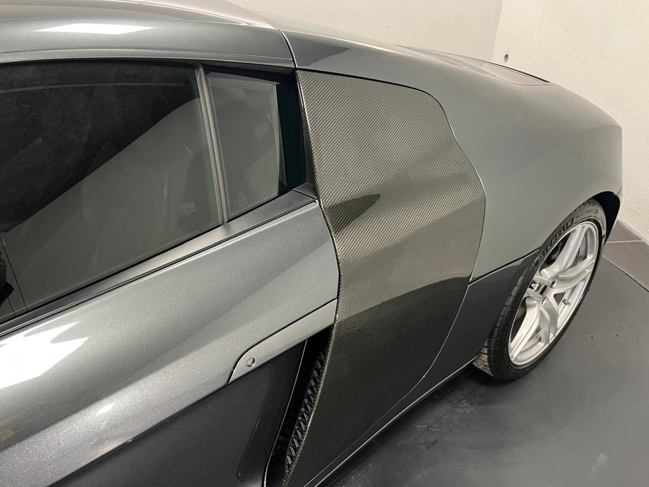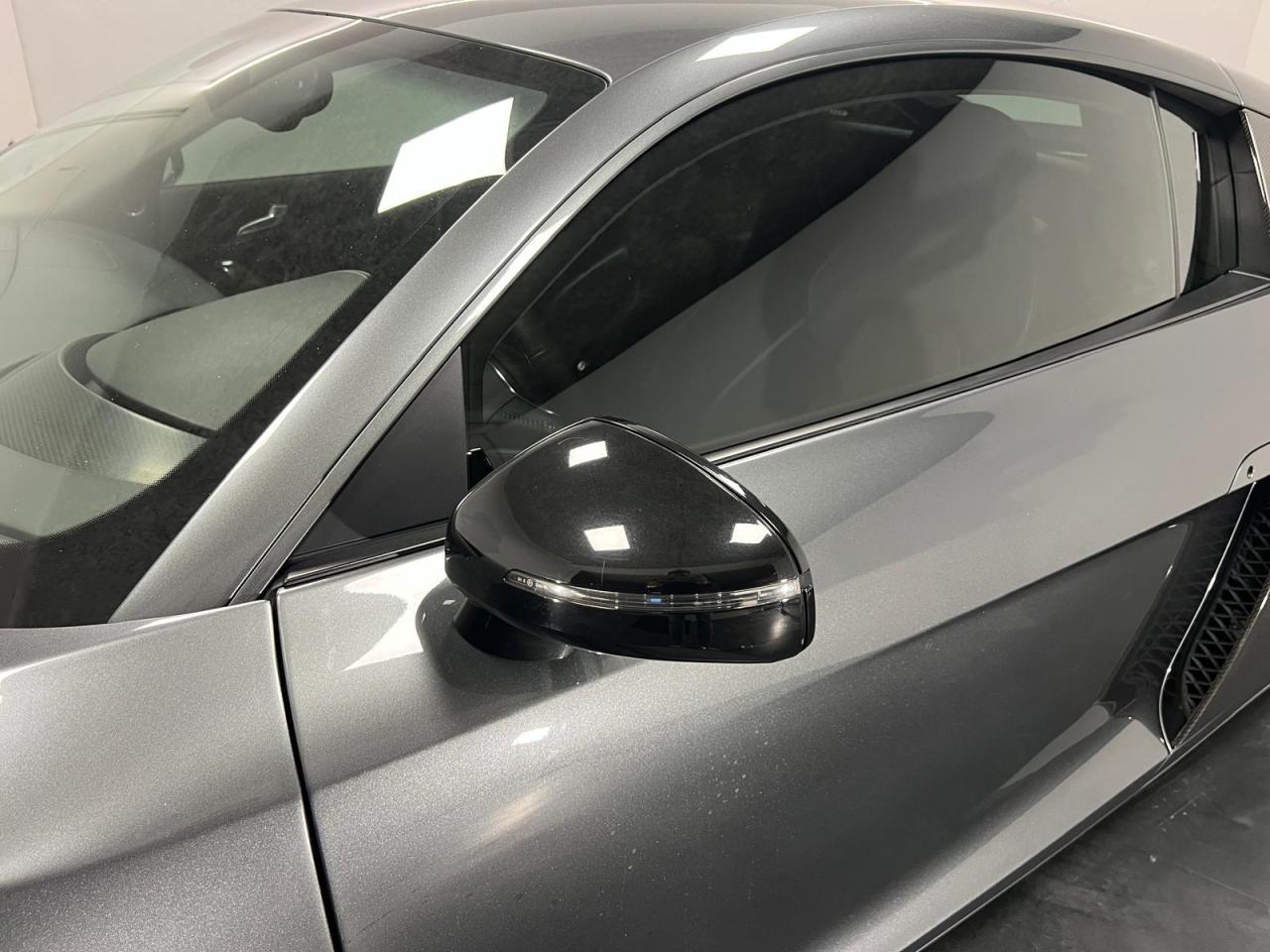 3ème feu stop arrièreAirbags grand volume pour le conducteur et le passagerAirbags latéraux (tête/thorax) à l'avant, intégrés aux dossiers des sièges ; en cas de déclenchement d'un airbag, le système déverrouille les portières, allume l'éclairage intérieur, active les feux de Airbags latéraux tête et thoraxAlarme antivol avec protection anti-remorquage, volumètrique avec sirène indépendanteAlarme antivol incluant protection volumétrique de l'habitacle et protection antiremorquage par capteur d'inclinaison désactivableAntipatinage ASR : empêche le patinage des roues motrices ; assure une motricité optimaleApplications décoratives Gris micrométalliqueAppuie-tête actifs réglables en hauteurAppuis-tête réglablesAudi Backguard, en cas de collision arrière, la conception du siège permet l'amortissement du haut du corps et le soutien plus précoce de la têteAvertisseur ''2 tons''Avertisseur deux tons sur le moyeu du volantAvertisseur deux tons, sur le volantBoîte à gants verrouillable éclairéeBoîte à gants verrouillable et éclairée avec rangement pour lunettesCalandre Singleframe laquée noir brillantCarrosserie à architecture Audi Space Frame (ASF)Carrosserie : architecture Audi Space Frame ASF. Association innovante d'aluminium et d'acier assurant une plus grande rigidité et davantage de dynamisme, de stabilité et de sécuritéCeintures AR latérales réglables en hauteurCeintures de sécurité à prétensionneurs et limiteurs de forceCeintures de sécurité AV réglables en hauteurCeintures de sécurité trois pointsCeintures de sécurité trois points à enrouleur avec prétensionneurs pyrotechniques, limiteurs de tension et réglage en hauteurCendrier et allume-cigares sur la console centraleChâssis “Sport”Châssis Sport avec réglages dynamiques de châssisCiel de pavillon en tissu noir ou gris lumièreClimatisation automatiqueCockpit de type Monoposto : arche entourant la casquette d'instrumentation et se prolongeant sur la portière conducteur et sur la console centraleColonne de direction de sécuritéColonne de direction réglable en hauteur / profondeurContrôle de la pression des pneumatiquesDéverrouillage du capot moteur, de la malle avant et de la trappe à carburant depuis la place conducteurDirection assistée électromécanique, assistance asservie à la vitesseEBV : Répartiteur électronique de freinageEclairage intérieur à extinction temporiséeEclairage intérieur à temporisation avec contacteurs sur toutes les portièresEclaireurs et catadioptres sur toutes les portièresEcrous antivolEDS (blocage électronique de différentiel)Essuie-glace à intermittence réglableEssuie-glace deux vitesses avec commande automatiqueFeux antibrouillard arrièreFeux arrière entièrement à diodes, feux stop, troisième feu stop, clignotants, feux arrière et feu arrière de brouillard sous verre transparent, feux de recul et clignotants blancsFeux de jour à LEDFixation Isofix pour siege passager AVFrein à main mécaniqueFreinage : étriers fixes à huit pistons à l'avant et à quatre pistons à l'arrière, cartographie de servofrein adaptée, disques de freinage ajourés et ventilés à l'avant et à l'arrière, en deux parGrille de boîte de vitesses manuelle en H, en acieridSAT : système d'immobilisation et de localisation par satelliteInscription R8 à l'arrière du véhicule et sur le compte-toursInstrumentation R8 spécifique gris micrométallique à éclairage réglableJantes en aluminium coulé style 6 branches, 8,5 J x 18” avec pneus 235/40 R 18 à l'avant, et jantes 10,5 J x 18” avec pneus 285/35 R 18 à l'arrièreLave-pharesLave-phares haute pressionLivre de bord avec étui en AlcantaraLivre de bord avec étui en cuirLunette arrière dégivrante avec minuterie et antenne de vitre intégréeMMI Unité de commande des réglages du véhicule , de la radio, du GPS Plus (en option), du changeur 6 CD (en option) et de la préparation téléphone Bluetooth (en option)Moquette et tapis complémentaires en velours, couleur assortie à celle de l'habitacleMoulures de seuils de portes avec insert d'aluminium et inscription R8Outillage de bord dans le coffrePare-brise athermique en verre feuilleté avec bande grise sur la partie supérieurePare-brise en verre athermique feuilleté avec bande de couleur grise sur la partie supérieurePare-chocs enrobés de synthétique dans la couleur de la carrosseriePare-soleil gauche et droite rabattables et orientables avec miroir de courtoisie éclairéPare-soleil rabattables et pivotants, côtés conducteur et passager avant, avec miroir de courtoisie occultablePlafonnier à temporisation avec contacteur sur toutes les portières ; éclairage côté passager avant et dans le coffrePommeau de levier de vitesses en aluminiumPommeau de levier de vitesses en aluminium avec anneau décoratif style aluminiumPorte-boissons, double dans la console centralePrise 12 V dans la boîte à gants et le coffrePrise 12V dans le coffreProgramme de stabilité électronique (ESP)Projecteurs antibrouillards en verre transparent, projecteurs halogènes intégrés dans le bouclier AVProjecteurs au Xénon, lave phares et réglage de site des phares automatiqueProtection anticollision latérale dans les portières, constituée de profilés d'aluminium rigidesProtection antidémarrage électronique avec code modifiable, activation automatique par clé de contactProtection latérale anticollisionQuattro, transmission intégrale permanente augmentant la motricité et la sécurité activeRétroviseur intérieur jour et nuitRétroviseur intérieur jour/nuit manuelRétroviseurs extérieurs électriquement, asphérique à gauche, convexe à droite, boîtiers laqués dans la couleur de carrosserie, avec clignotants latéraux à diodes intégrésRétroviseurs extérieurs électriques et dégivrants, asphérique à gauche, convexe à droite, boîtiers laqués dans la couleur de carrosserie, avec clignotants latéraux à diodes 