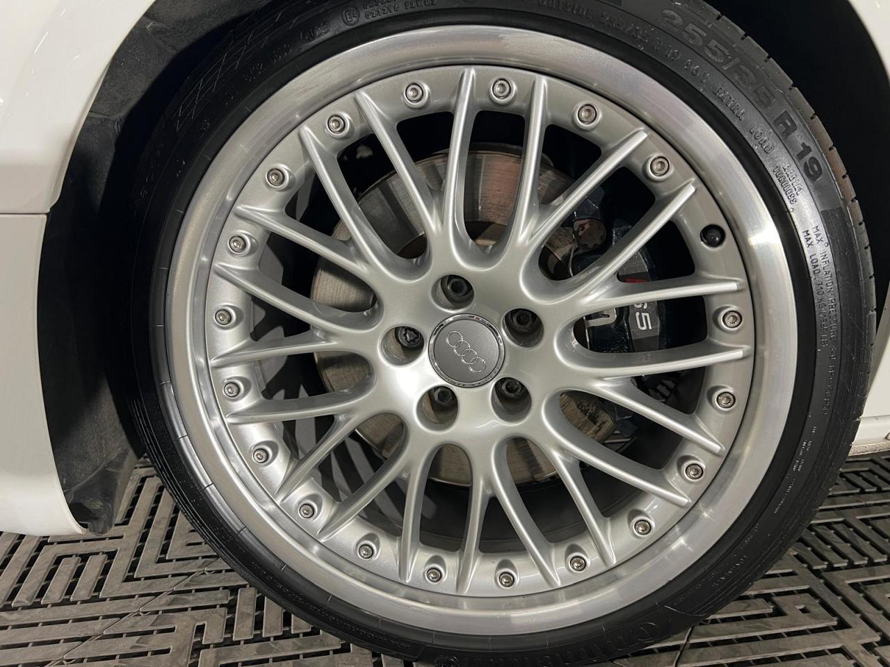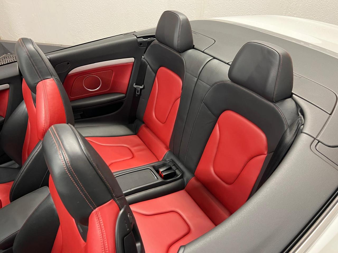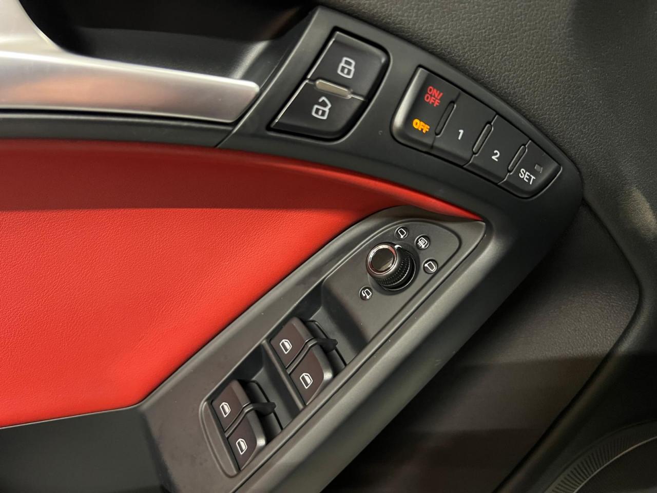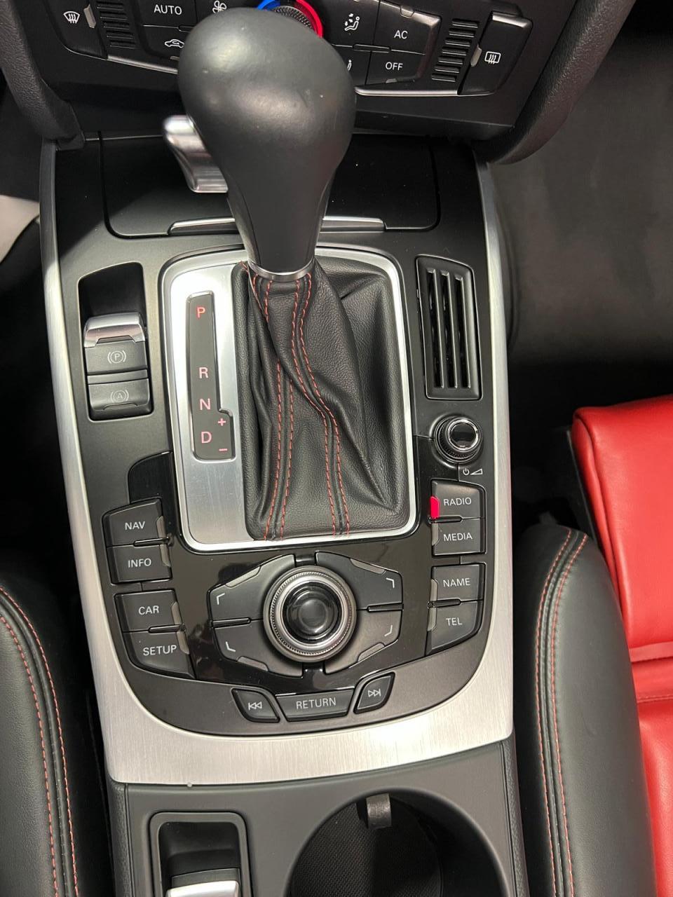 Accoudoir central avant avec vide-poches et 2 prises 12 VAirbags grand volume pour le conducteur et le passagerAirbags latérauxAllume-cigare intégré dans le cendrierAntipatinage ASR : empêche le patinage des roues motrices ; assure une motricité optimaleApplications décoratives en aluminium brossé mat sur les contre-portes, les garnitures latérales à l'arrière ainsi que sur la console centraleAppuie-têtes, à l'avant et à l'arrière, réglables en hauteur à l'avantArceaux de sécurité actifs : système de protection à déclenchement automatique situé derrière les appuie-têtes arrièreAudi Hold Assist : système désactivable maintenant le véhicule à l'arrêt en descente comme en côte; permet un redémarrage confortable sans mettre le frein à mainAvance-ceinture automatique, avec deux positions pour personnes de taille différente. La ceinture avance automatiquement au démarrage du moteur et reprend sa place initiale une fois enclenchéeAvertisseur deux tons sur le moyeu du volantBlocage électronique de différentiel (EDS)Boîte à gants verrouillableCalandre Singleframe gris platine avec entretoises verticales chroméesCapote entièrement automatique, en tissu isolant 3 couches, pouvant être activée jusqu'à 50 km/hCarrosserie galvanisée, autoportante, soudée au groupe plancherCeintures de sécurité, automatiques à trois points pour les quatre placesCendrier, sur la console centrale avantChâssis DynamiqueChâssis Sport spécifique S : suspension réglée pour un contact plus direct avec la route et un comportement sportifCiel de capote en tissu, couleur au choix argent ou noirClimatisation automatique Confort Plus 3 zonesColonne de direction de sécuritéContact d'allumage électronique, clé de contact mémorisant différentes données d'entretienCric de levageDétecteur de pluie et allumage automatique des projecteursDirection assistée ServotronicDossiers de banquette arrière rabattables 50/50Eclairage intérieur à extinction temporisée et contacteurs sur toutes les portièresEcran 7” couleur sur le tableau de bord pour l'affichage des fonctions radio, climatisation et menu du véhicule, ainsi que de l'heureEcrous antivolEssuie-glace deux vitesses avec commande automatiqueExtensions de bas de caisse couleur carrosserieFeux arrière à diode pour feux de stop et feux de position ; feux de recul, feux antibrouillard et clignotant à ampoulesFeux de route assistés : gestion automatique du passage de feux de croisement à pleins phares et inversementFilet anti-remousFilets de rangement au dos des sièges avantFixation pour sièges enfants ISOFIX à l'arrièreFrein de stationnement electromécaniqueGPS Advanced : système de navigation MMI de troisième générationidSAT : système d'immobilisation et de localisation par satelliteIndicateur d'usure des garnitures de freinIndicateur de température extérieure dans le système d'information du conducteurInstrumentation, avec éclairage réglable, compteur de vitesse électronique avec compteur kilométrique et compteur journalier, compte-tours, horloge, affichage de la température du liquide de refroidissement et jauge de carburantJantes en aluminium coulé style S 5 branches doubles, 8,5 J x 18”, avec pneus 245/40 R18Lève-vitres électriques à l'avant avec protection antipincement, fonction ouverture/fermeture confort par impulsions ; vitres arrière fixesLimiteurs d'effort des ceintures de sécurité avantLogement de capote à configuration variable, avec caisson de capote abaissable automatiquement lors de l'ouverture de la capote. Lors du chargement, le caisson peut être relevé si la capote est ferméeLunette arrière dégivrante, avec minuterieOrdinateur de bord couleur et contrôle AutocheckOutillage de bord dans le coffrePack AluminiumPack EclairagePoignées de portes couleur carrosseriePorte-boissons sur la console centrale, 2 porte-boissons et volet roulant, intégré au centre de la banquette arrièrePréparation pour téléphone 2 W bi-bande (D et E)Prétensionneurs sur les ceintures avant et arrièrePrise 12V dans le coffreProgramme de stabilité électronique (ESP)Projecteurs antibrouillardProtection antidémarrage électroniqueProtection contre l'échauffement : la pigmentation spéciale empêche la sellerie de trop s'échauffer ; les rayons infrarouges contenus dans la lumière du soleil sont reflétésQuatre oeilletons de fixation, pour maintenir les bagages et objets dans le coffre, points de suspension pour le filet mixteQuattro : transmission intégrale permanente avec répartition asymétrique et dynamique de coupleRéglage d'appuis lombaires électriques sur 4 plans pour sièges avantRégulateur de vitesseRétroviseur intérieur électrochromeRétroviseurs extérieurs dégivrants avec clignotant latéral intégré à diodes, réglable électriquement ; boîtiers style aluminium, miroir asphériqueRoue de secours temporaireSellerie mixte cuir/alcantaraSeuils de porte avec insert en aluminium et inscription S5Sièges avant électriques pour longueur, hauteur, inclinaison d'assise et de dossierSièges avant Sport avec repose cuisse réglable en longueurSorties d'échappement, visible, double, deux sorties ovales à gauche et à droiteStyle aluminium, dans l'habitacle sur les commutateurs d'éclairage, la commande de climatisation, la commande MMI, les diffuseurs d'air et autour du levier de vitessesSystème acoustique d'aide au stationnement arrièreSystème antiblocage ABS avec répartiteur de freinage EBV, programme électronique de stabilisation ESP avec amplificateur hydraulique de freinage d'urgenceSystème audiophonique AudiSystème d'appuie-tête intégralSystème d'information du conducteur avec affichage couleur : fournit à l'écran les informations de l'ordinateur de bord et du contrôle Autocheck, certaines informations du système MMI, l'indicateur du rapport de vitesse ainsi que l'affichageTapis complémentaires en velours à l'avant, assortis à la couleur de la mo