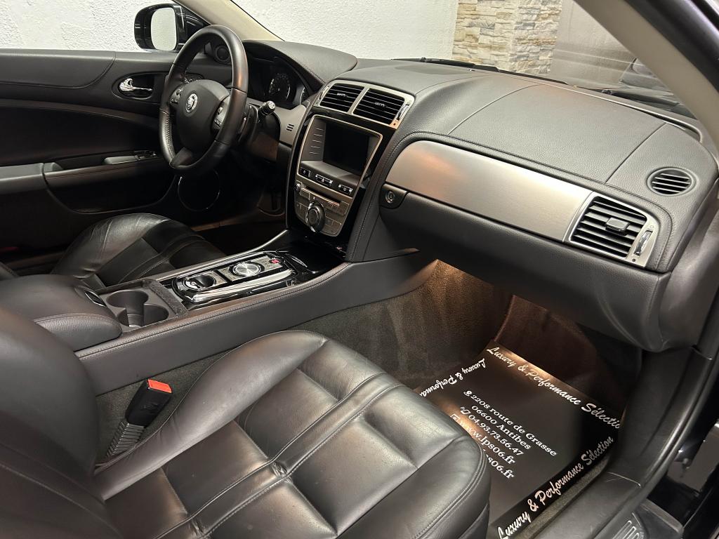 Climatisation automatiqueClimatisation avec recyclage automatique de l'air avec 5 niveaux de réglageContrôle JaguarDrive™ Mode Hiver & Mode DynamiqueDSC (Contrôle dynamique de la stabilité avec mode Trac DSC)Dynamique de conduite adaptativeEclairage par LED des feux arrière avec feux de recul doubles et feux antibrouillard arrièreEcran tactile 7” à affichage couleurEssuie-glace à déclenchement automatiqueFrein de stationnement électronique (EPB)Interface pour lecteur audio portableJantes 18” VenusMémorisation de trois combinaisons de réglages du siège conducteur, des rétroviseurs extérieurs et de la colonne de directionPhares bi-Xénon avec feux de manoeuvre intégrés, lave-phares et réglage automatique de la hauteur de l'inclinaison du faisceauPhares bi-Xénon avec feux de manoeuvre intégrés, lave-phares et réglage automatique de la hauteur du faisceauRégulateur de vitesse avec limiteur automatique de vitesse (ASL)Répartiteur électronique de freinage (EBD)Rétroviseurs extérieurs chauffants, réglables et escamotables électriquement (rabattables automatiquement lors du verrouillage du véhicule), à inversion jour/nuit automatique et fonction de mémorisationSélecteur JaguarDriveSièges Sport avec habillage en cuir, réglables en 10/10 directions. Le réglage électrique des sièges conducteur et passager comprend le réglage avant/arrière, l'inclinaison de l'assise et du dossier, la hauteur et les supports lombaires (2 dSystème audio Jaguar avec chargeur 6 CD en façade, Compatibilité Windows Media® Audio (WMA) et MP3Système d'aide au stationnement avant et arrièreSystème d'allumage automatique des pharesSystème de démarrage sans clé, Jaguar Smart Key SystemSystème de navigation utilisant la technologie DVD avec instructions routières et canal d'informations routières TMC (“Traffic Message Chanel”)Système de Réparation de Pneu JaguarSystème de téléphonie BluetoothTransmission automatique électronique à 6 rapports avec commande séquentielles