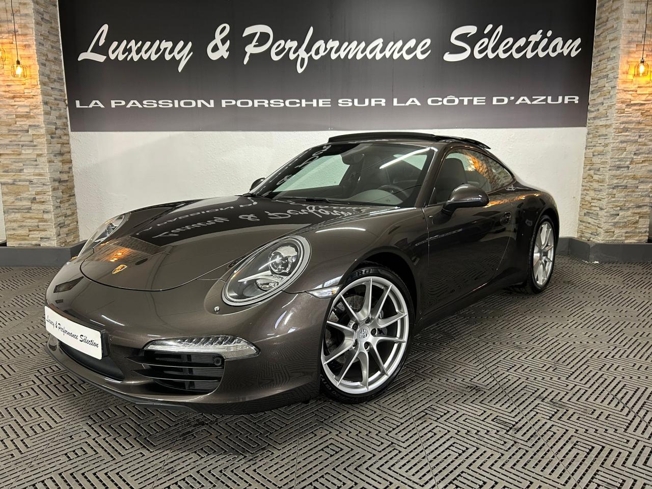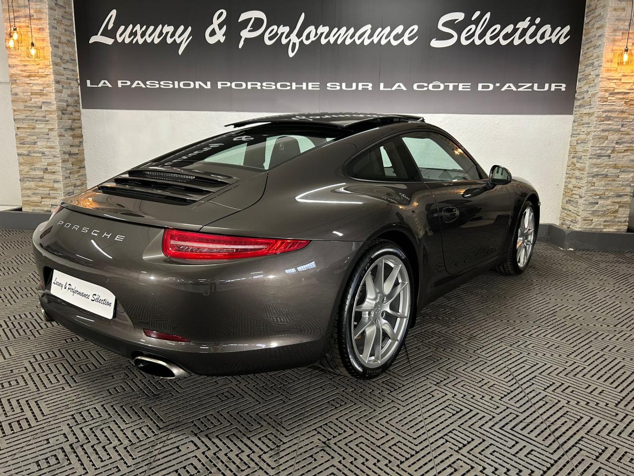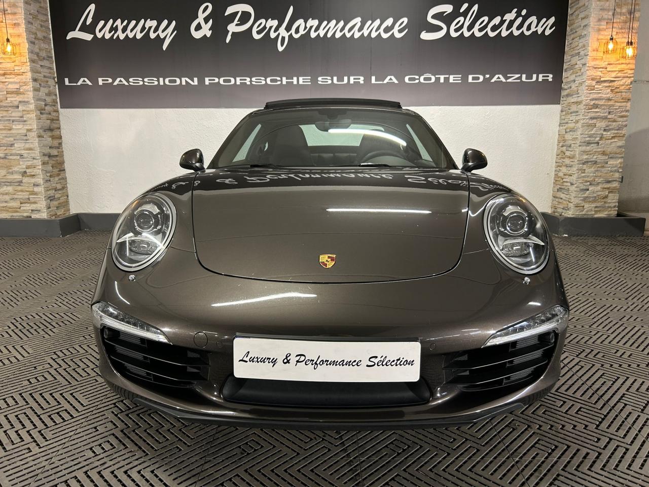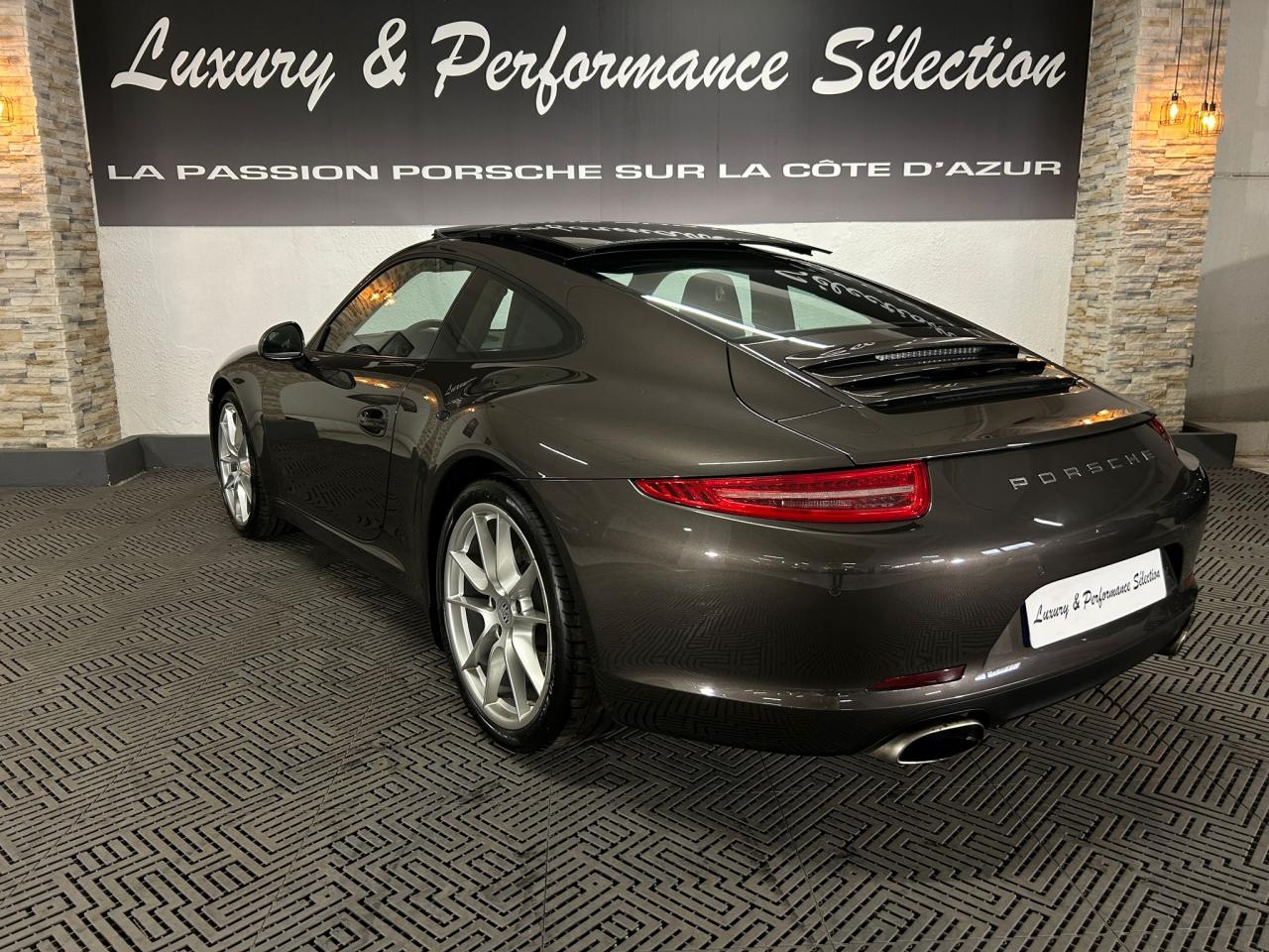 3 prises 12 V (plancher passager avant, boîte à gants, coffre de rangement de la console centrale)5 instruments ronds intégrés dans le cockpitABS (intégré au PSM)Accélérateur électroniqueAffichage analogique : régime, vitesse, pression et température de l'huile, température du liquide de refroidissement et jauge de carburantAffichage de la vitesse engagée, sur le compte-toursAileron arrière à déploiement automatiqueAirbags grand volume (deux niveaux de déclenchement) pour le conducteur et le passagerAppuie-tête intégrés aux sièges avantAssistance automatique à l'utilisation des feux de croisement comprenant l'éclairage d'accompagnementBaguettes de seuil de porte avec monogrammeBandes centrales et latérales des sièges avant et appuie-tête en cuir estampéBloc moteur et culasse en aluminiumBlocs optiques additionnels séparés, intégrés dans le bouclier avant, incluant les feux de jour et de position ainsi que les clignotants à diodes électroluminescentesBobines d allumage séparées, distribution, statique à haute tensionBoîte à gants grand volume verrouillableBouclier avant avec entrées d'air intégréesBoucliers avant et arrière déformables, avec pare-chocs intégrés (en alliage léger) fixés sur des absorbeurs de chocsCapot de coffre, portes et capot arrière en aluminiumCatadioptres intégrés au bouclier arrièreCeintures de sécurité à 3 points à l'avant et à l'arrière, boucles de ceintures sur les siègesCiel de toit et montant de lunette arrière en alcantaraClimatisation automatique bi-zone avec réglage individuel de la température pour le conducteur et le passager avant, commande automatique du recyclage de l'air avec capteur de qualité d'air et fonction chaleur résiduelleCompensation hydraulique du jeu des soupapesConcept d'éclairage blanc pour l'ensemble de l'habitacle avec rhéostat progressifConception allégée intelligente acier/aluminiumConsole centrale montante avec barrettes de commandes, un vide-poches et un coffre de rangement fermé comportant une prise 12 VCoupé 2+2 placesCouronne du volant, leviers de vitesse et de frein à main, poignées de porte, accoudoirs et coffre de rangement de la console centrale en cuir lisseCrochets porte-vêtement au dos des sièges avant et sur les montants latérauxDeux catalyseurs à 3 voiesDirection assistée électromécanique à démultiplication variable et impulsionDispositif antidémarrage avec verrouillage centralisé et télécommande, dispositif de sécurité, système d'alarme et alarme volumétriqueDispositif de contrôle de l'usure des freins sur chaque plaquetteDisques de frein de 330 mm de diamètre à l'avant et à l'arrièreÉléments en Argent galvanisé : buses d'aération, baguettes décoratives du tableau de bord, cache de la console centrale, poignée de la boîte à gants, poignées et baguettes de parement des portesEssieu arrière multibras avec barres stabilisatricesEssieu avant avec jambes de force McPherson et barres stabilisatricesEssuie-glaces avant aérodynamiques, à deux vitesses de balayage, commande intermittente réglable et buses de lave-glace chauffantesEtriers de frein noirsEtriers fixes monobloc fermés, en aluminium, à 4 pistons à l'avant et à l'arrière, disques de frein ventilés et ajourésFeux arrière comprenant les feux de recul et les clignotants, le feu antibrouillard arrière ainsi que le troisième feu stop et l'éclairage de la plaque minéralogique à diodes électroluminescentesFiltre à charbon actif retenant les particules et les pollensFonction Stop-Start automatiqueFonds de compteur (compte-tours compris) noirsFrein de parking électriqueInjection directe d'essence (Direct Fuel Injection, DFI)Interface audio universelle (AUX) logée dans la boîte à gants permettant de connecter des lecteurs audio externes (la commande s'effectue à partir du lecteur).Jantes « Carrera » 11 J x 19 pouces en alliage léger avec pneumatiques 285/35 ZR 19 à l'arrièreJantes « Carrera » 8,5 J x 19 pouces en alliage léger avec pneumatiques 235/40 ZR 19 à l'avantKit de réparation des pneus avec compresseur électriqueLève-vitres électriques à impulsion et abaissement séquentielLubrification intégrée à carter secLunette arrière chauffanteMesure de la masse d'air par capteur de pressionModule de gestion électronique du moteur (EMS SDI 9.1)Pack Audio PlusPhares Bi-Xénon avec réglage dynamique de la portée d'éclairage et lave-pharesPlaquette portant l'inscription Carrera devant le levier de vitessePompe à huile à régulation électroniquePorsche Active Suspension Management (PASM) avec abaissement du châssis de 10 mmPorsche Side Impact Protection System (POSIP) comprenant : protection anti-encastrement latérale dans les portes,airbags thorax intégrés dans les bandes extérieures des sièges avant et airbags de tête intégrés dans les contre-portes pour le condPorsche Torque Vectoring (PTV PTV Plus avec la boîte PDK optionnelle) avec différentiel arrière à glissement limité mécanique avec blocage asymétrique (22% en accélération et 27% en décélération)Pré-équipement pour l'installation en seconde monte du dispositif ISOFIX/Top-Tether destiné à fixer le siège enfant sur le siège passager avantPré-équipement pour le montage d'un système de transport sur toitPrétensionneurs de ceinture à l'avantRangement supplémentaire derrière les sièges arrièreRécupération d'énergie pour l'électronique embarquéeRefroidissement par eau, avec gestion thermique du moteur et de la boîte de vitesseRégulation sélective du cliquetisRégulation stéréo par sondes LambdaRétroviseurs extérieurs électriques chauffants, sur les portes, asphérique côté conducteurSièges arrière rabattables individuellementSièges sport avec réglage électrique des dossiers et réglage manuel de la profondeur et de la hauteur des assisesSignature Porsche et monogramme arrière (« 911 Carrera » ou « 911 Carrera S ») chromé, fi