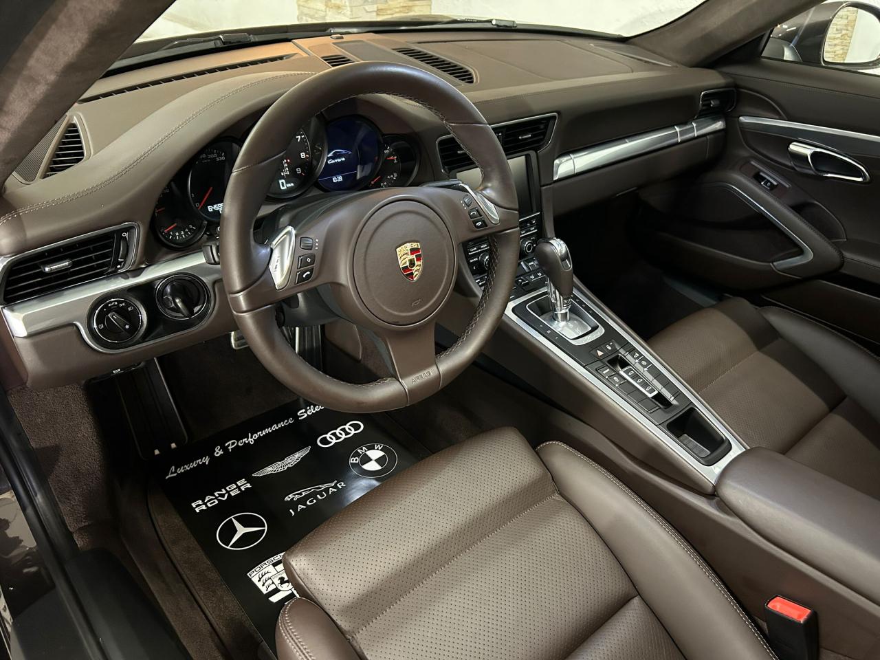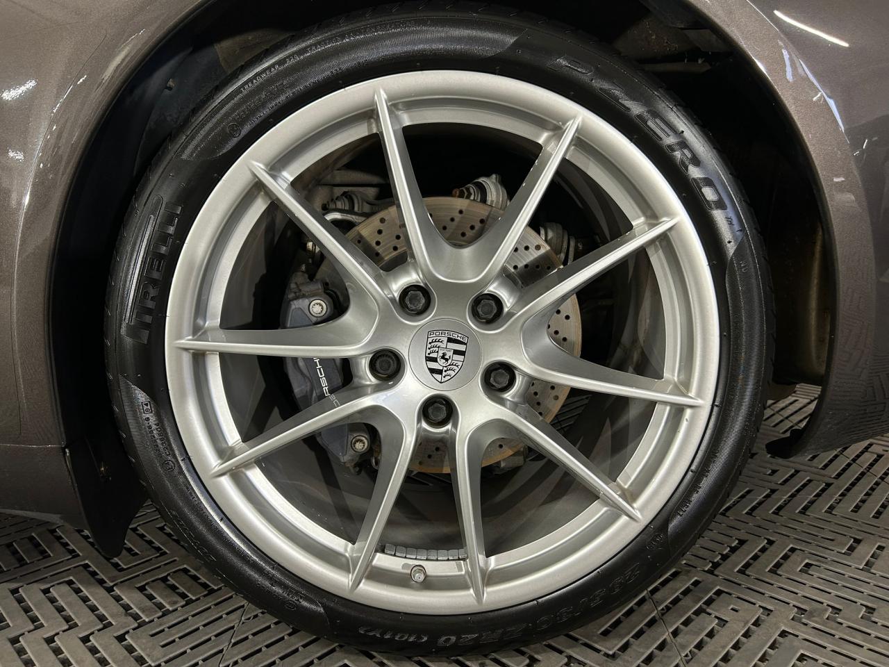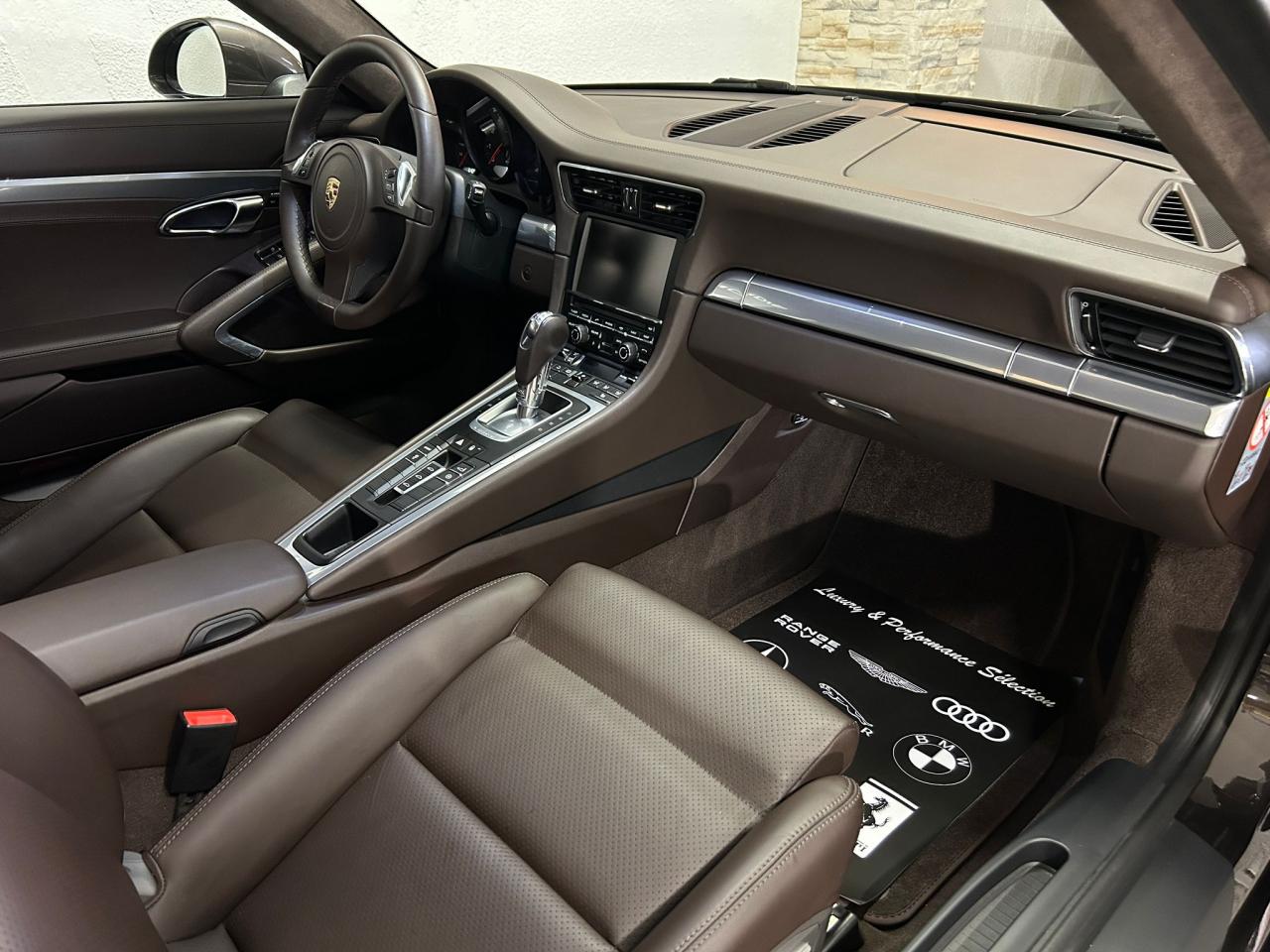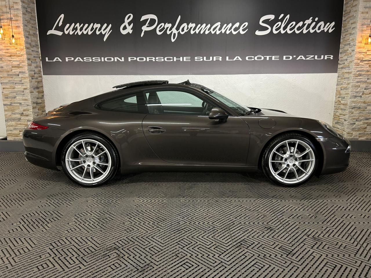 3 prises 12 V (plancher passager avant, boîte à gants, coffre de rangement de la console centrale)5 instruments ronds intégrés dans le cockpitABS (intégré au PSM)Accélérateur électroniqueAffichage analogique : régime, vitesse, pression et température de l'huile, température du liquide de refroidissement et jauge de carburantAffichage de la vitesse engagée, sur le compte-toursAileron arrière à déploiement automatiqueAirbags grand volume (deux niveaux de déclenchement) pour le conducteur et le passagerAppuie-tête intégrés aux sièges avantAssistance automatique à l'utilisation des feux de croisement comprenant l'éclairage d'accompagnementBaguettes de seuil de porte avec monogrammeBandes centrales et latérales des sièges avant et appuie-tête en cuir estampéBloc moteur et culasse en aluminiumBlocs optiques additionnels séparés, intégrés dans le bouclier avant, incluant les feux de jour et de position ainsi que les clignotants à diodes électroluminescentesBobines d allumage séparées, distribution, statique à haute tensionBoîte à gants grand volume verrouillableBouclier avant avec entrées d'air intégréesBoucliers avant et arrière déformables, avec pare-chocs intégrés (en alliage léger) fixés sur des absorbeurs de chocsCapot de coffre, portes et capot arrière en aluminiumCatadioptres intégrés au bouclier arrièreCeintures de sécurité à 3 points à l'avant et à l'arrière, boucles de ceintures sur les siègesCiel de toit et montant de lunette arrière en alcantaraClimatisation automatique bi-zone avec réglage individuel de la température pour le conducteur et le passager avant, commande automatique du recyclage de l'air avec capteur de qualité d'air et fonction chaleur résiduelleCompensation hydraulique du jeu des soupapesConcept d'éclairage blanc pour l'ensemble de l'habitacle avec rhéostat progressifConception allégée intelligente acier/aluminiumConsole centrale montante avec barrettes de commandes, un vide-poches et un coffre de rangement fermé comportant une prise 12 VCoupé 2+2 placesCouronne du volant, leviers de vitesse et de frein à main, poignées de porte, accoudoirs et coffre de rangement de la console centrale en cuir lisseCrochets porte-vêtement au dos des sièges avant et sur les montants latérauxDeux catalyseurs à 3 voiesDirection assistée électromécanique à démultiplication variable et impulsionDispositif antidémarrage avec verrouillage centralisé et télécommande, dispositif de sécurité, système d'alarme et alarme volumétriqueDispositif de contrôle de l'usure des freins sur chaque plaquetteDisques de frein de 330 mm de diamètre à l'avant et à l'arrièreÉléments en Argent galvanisé : buses d'aération, baguettes décoratives du tableau de bord, cache de la console centrale, poignée de la boîte à gants, poignées et baguettes de parement des portesEssieu arrière multibras avec barres stabilisatricesEssieu avant avec jambes de force McPherson et barres stabilisatricesEssuie-glaces avant aérodynamiques, à deux vitesses de balayage, commande intermittente réglable et buses de lave-glace chauffantesEtriers de frein noirsEtriers fixes monobloc fermés, en aluminium, à 4 pistons à l'avant et à l'arrière, disques de frein ventilés et ajourésFeux arrière comprenant les feux de recul et les clignotants, le feu antibrouillard arrière ainsi que le troisième feu stop et l'éclairage de la plaque minéralogique à diodes électroluminescentesFiltre à charbon actif retenant les particules et les pollensFonction Stop-Start automatiqueFonds de compteur (compte-tours compris) noirsFrein de parking électriqueInjection directe d'essence (Direct Fuel Injection, DFI)Interface audio universelle (AUX) logée dans la boîte à gants permettant de connecter des lecteurs audio externes (la commande s'effectue à partir du lecteur).Jantes « Carrera » 11 J x 19 pouces en alliage léger avec pneumatiques 285/35 ZR 19 à l'arrièreJantes « Carrera » 8,5 J x 19 pouces en alliage léger avec pneumatiques 235/40 ZR 19 à l'avantKit de réparation des pneus avec compresseur électriqueLève-vitres électriques à impulsion et abaissement séquentielLubrification intégrée à carter secLunette arrière chauffanteMesure de la masse d'air par capteur de pressionModule de gestion électronique du moteur (EMS SDI 9.1)Pack Audio PlusPhares Bi-Xénon avec réglage dynamique de la portée d'éclairage et lave-pharesPlaquette portant l'inscription Carrera devant le levier de vitessePompe à huile à régulation électroniquePorsche Active Suspension Management (PASM) avec abaissement du châssis de 10 mmPorsche Side Impact Protection System (POSIP) comprenant : protection anti-encastrement latérale dans les portes,airbags thorax intégrés dans les bandes extérieures des sièges avant et airbags de tête intégrés dans les contre-portes pour le condPorsche Torque Vectoring (PTV PTV Plus avec la boîte PDK optionnelle) avec différentiel arrière à glissement limité mécanique avec blocage asymétrique (22% en accélération et 27% en décélération)Pré-équipement pour l'installation en seconde monte du dispositif ISOFIX/Top-Tether destiné à fixer le siège enfant sur le siège passager avantPré-équipement pour le montage d'un système de transport sur toitPrétensionneurs de ceinture à l'avantRangement supplémentaire derrière les sièges arrièreRécupération d'énergie pour l'électronique embarquéeRefroidissement par eau, avec gestion thermique du moteur et de la boîte de vitesseRégulation sélective du cliquetisRégulation stéréo par sondes LambdaRétroviseurs extérieurs électriques chauffants, sur les portes, asphérique côté conducteurSièges arrière rabattables individuellementSièges sport avec réglage électrique des dossiers et réglage manuel de la profondeur et de la hauteur des assisesSignature Porsche et monogramme arrière (« 911 Carrera » ou « 911 Carrera S ») chromé, fi