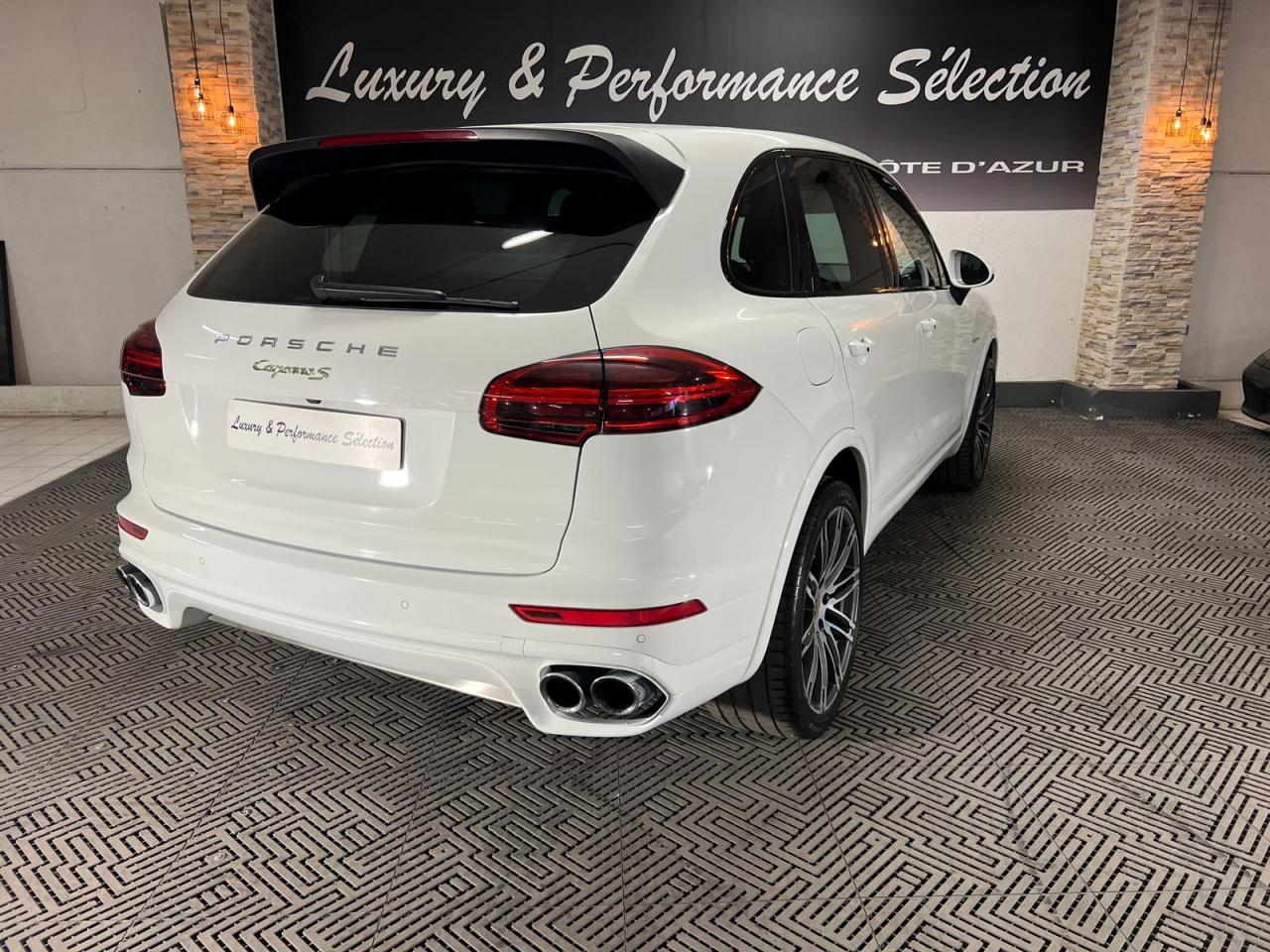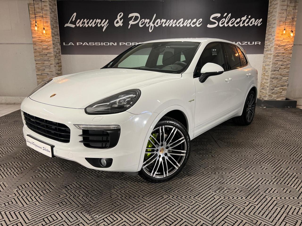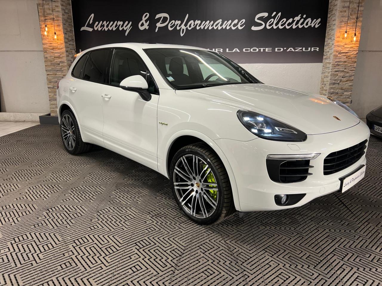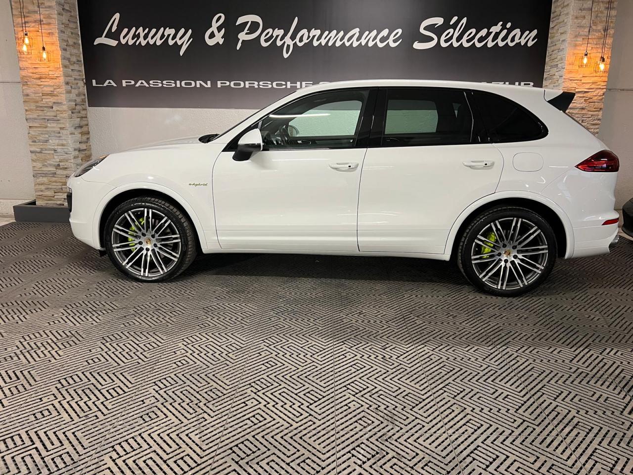 2 doubles sorties d'échappement5 instruments ronds intégrés dans le cockpit5 places, banquette arrière avec 2 sièges latéraux confortables et une place centrale5 prises de courant (12 V)ABS (antiblocage des roues intégré au PSM)Accoudoir centralAccoudoir de la console centrale relevable et réglable en profondeurAffichage analogique : température et pression d'huile, température du liquide de refroidissement, niveau carburantAffichage spécifiques à l'hybride dans le combiné d'instruments (ex. powermètre) et aiguilles en Vert AcideAirbags grand volume pour le conducteur et le passagerAirbags latéraux avant intégrés aux siègesAirbags rideauxAlimentation en essence déconnectable en décélérationAntenne intégrées dédiées à la radio, la navigation, le téléphone et la TV (selon l'équipement choisi)Appuie-tête réglables sur 4 sièges (non réglable sur la place centrale arrière)Assistance à la descente (Porsche Hill Control, PHC)Assistance au démarrageAssistance automatique à l'utilisation des feux de croisementBaguettes de parement de couleur ArgentBanquette arrière fractionnable (40/20/40), accoudoir central rabattable, avec réglage manuel de la profondeur d'assise et de l'inclinaison du dossierBatterie Lithium-ion de 428 Volts situé sous le plancher du coffreBoîte à gants réfrigéréeBoîte de vitesse Tiptronic S à 8 rapports avec fonction Stop-Start automatiqueBorne de recharge pour Chargeur Universel Porsche (AC)Bouclier avant avec entrées d'air intégréesCable additionnel pour prises industrielles 5 trous (400V, 32A)Cable de chargement : 2.5mCalage des arbres à cames d'admission en continuCapacité de réservoir : 85 litresCarrosserie galvanisée autoporteuseCeintures de sécurité avec prétensionneur (avant et arrière), limiteur d'effort de ceinture (avant), ceinture 3 points sur la place centrale arrièreChargeur embarqué (3.6 kW)Chargeur Universel Porsche (AC) avec sacoche de transport et deux câblesChauffage de la lunette arrière avec fonction d'arrêt automatiqueCiel de toit en tissuClimatisation automatique avec réglage séparé côtés conducteur et passager, contrôle automatique du recyclage de l'air, touche AC-MAX et capteur d'humiditéCommande d'accélérateur électroniqueCompresseur de climatisation électriqueCompte-tours à fond gris avec logo "e-hybrid"Concept d'éclairage de l'habitacleContrôle de pression des pneus ( TPMS )Couvre pédales en aluminiumCouvre-bagages souple enroulable (dissimulé dans un boitier amovible)Diagnostic embarqué (OBD II) avec contrôle des émissionsDiamètre des disques de frein 360 mm à l'avant, 330 mm à l'arrièreDifférentiel de freinage automatique (ABD)Direction assistée électro-hydrauliqueDispositif de contrôle de l'usure des freins sur chaque plaquetteDispositif de gestion thermiqueDos des sièges avant avec aumônières intégréesDouble pare-soleil conducteur et passagerEclairage de la plaque minéralogique arrière à LEDEcran TFT couleur haute définition 4,8 pouces, affichage des rapports de la Tiptronic S, des intervalles de révision, de la température extérieure et des différents témoins d'alarmeEntourages de vitres en aluminiumEssieu arrière multibrasEssieu avant à double triangulationEssuie-glace arrière avec réglage de l'intermittence et buse de lave-glaceEssuie-glace avant à 2 vitesses de balayage et intermittence variable, capteur de pluie, et buses de lave-glace chauffantesEtriers de frein couleur Vert AcideEtriers fixes monobloc en aluminium 4 pistons à l'arrière, disques ventilésEtriers fixes monobloc en aluminium 6 pistons à l'avant, disques ventilésFermeture centralisée des portes avec télécommandeFeux antibrouillard, intégrés au bouclier avantFeux arrière à DEL avec feux stop adaptatifsFeux avant avec feux de position et clignotants à DELFeux de jours à DEL 4 pointsFiltres à particules et à pollen avec filtre à charbon actifFonction antireculFonction Stop-Start automatiqueFrein de parking électriqueFrein multi-collisionHayon automatiqueInjection directe d'essence (DFI)Inscription "Cayenne S" sur le hayon entourée en Vert AcideInscription "e-hybrid" sur les ailes avant gauche et droite entourée en Vert AcideJantes "Cayenne S" 18 poucesKit de réparation pneumatique avec compresseur auxiliaire électriqueLève-vitres électriques avant et arrière, avec fonctions confort, anti-pincement, et abaissement séquentielLubrification à carter secMiroir de courtoisie côté conducteur et passager avant éclairéMode CroisièreOrdinateur de bordPack intérieur peint en Noir, finition brillantePack non-fumeurPatères intégrés sur les piliers B côté conducteur et passagerPédale d'accélérateur avec point dur à pression variablePeinture BlanchePhares au Bi-xénonPorsche Active Suspension Management (PASM), réglage de la suspension sur 3 niveaux d'amortissement (Confort, Sport ou Sport Plus)Porsche Car Connect - Services en lignePorsche Car Connect (PCC) avec Porsche Vehicule Tracking System Plus (PVTS Plus)Porsche Traction Management (PTM) : transmission intégrale permanente avec différentiel central autobloquant, différentiel de freinage automatique (ABD), système de régulation antipatinage (ASR)Porte-gobelets doubles à diamètre variable à l'avant et à l'arrièrePré-équipement attelagePrise de chargement électrique à gaucheRange-bouteille dans les contre-portes avant et arrièreRangements dans l'habitacle (selon les modèles et les options de personnalisation choisies)Récupération d'énergie pour l'électronique embarquéeRégulateur de vitesseRenvois de ceinture des sièges conducteur et passager avant réglables manuellement en hauteurRétroviseurs extérieurs chauffants, réglables et repliables électriquement, de forme asphérique côté conducteurSeuils de portes en acier inoxydableSièges AV à réglage électrique 8 positionsSièges partiel cuirSignature "PORSCHE" avec monogramme arrière chroméStabilisation d'at