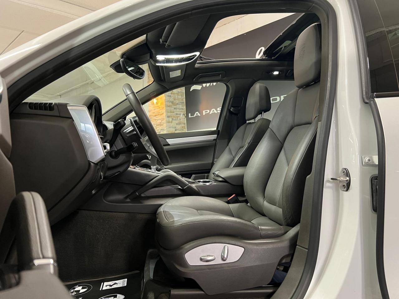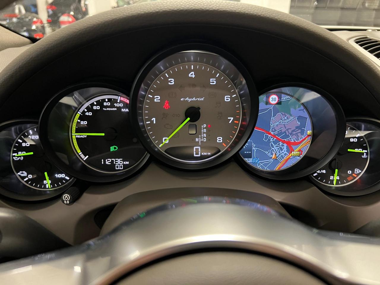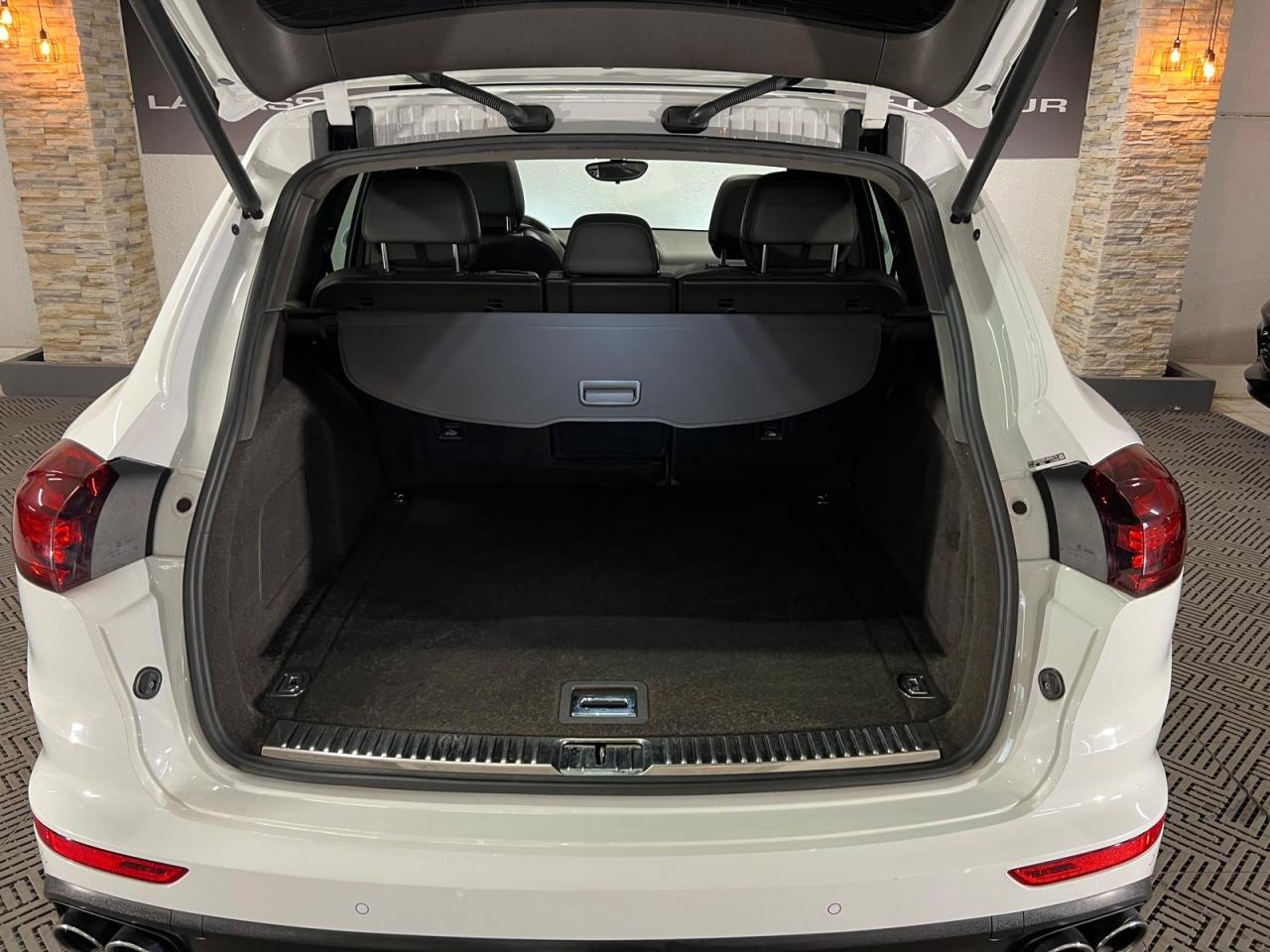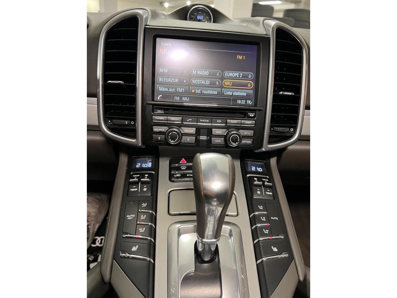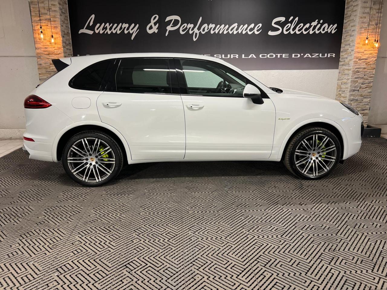2 doubles sorties d'échappement5 instruments ronds intégrés dans le cockpit5 places, banquette arrière avec 2 sièges latéraux confortables et une place centrale5 prises de courant (12 V)ABS (antiblocage des roues intégré au PSM)Accoudoir centralAccoudoir de la console centrale relevable et réglable en profondeurAffichage analogique : température et pression d'huile, température du liquide de refroidissement, niveau carburantAffichage spécifiques à l'hybride dans le combiné d'instruments (ex. powermètre) et aiguilles en Vert AcideAirbags grand volume pour le conducteur et le passagerAirbags latéraux avant intégrés aux siègesAirbags rideauxAlimentation en essence déconnectable en décélérationAntenne intégrées dédiées à la radio, la navigation, le téléphone et la TV (selon l'équipement choisi)Appuie-tête réglables sur 4 sièges (non réglable sur la place centrale arrière)Assistance à la descente (Porsche Hill Control, PHC)Assistance au démarrageAssistance automatique à l'utilisation des feux de croisementBaguettes de parement de couleur ArgentBanquette arrière fractionnable (40/20/40), accoudoir central rabattable, avec réglage manuel de la profondeur d'assise et de l'inclinaison du dossierBatterie Lithium-ion de 428 Volts situé sous le plancher du coffreBoîte à gants réfrigéréeBoîte de vitesse Tiptronic S à 8 rapports avec fonction Stop-Start automatiqueBorne de recharge pour Chargeur Universel Porsche (AC)Bouclier avant avec entrées d'air intégréesCable additionnel pour prises industrielles 5 trous (400V, 32A)Cable de chargement : 2.5mCalage des arbres à cames d'admission en continuCapacité de réservoir : 85 litresCarrosserie galvanisée autoporteuseCeintures de sécurité avec prétensionneur (avant et arrière), limiteur d'effort de ceinture (avant), ceinture 3 points sur la place centrale arrièreChargeur embarqué (3.6 kW)Chargeur Universel Porsche (AC) avec sacoche de transport et deux câblesChauffage de la lunette arrière avec fonction d'arrêt automatiqueCiel de toit en tissuClimatisation automatique avec réglage séparé côtés conducteur et passager, contrôle automatique du recyclage de l'air, touche AC-MAX et capteur d'humiditéCommande d'accélérateur électroniqueCompresseur de climatisation électriqueCompte-tours à fond gris avec logo "e-hybrid"Concept d'éclairage de l'habitacleContrôle de pression des pneus ( TPMS )Couvre pédales en aluminiumCouvre-bagages souple enroulable (dissimulé dans un boitier amovible)Diagnostic embarqué (OBD II) avec contrôle des émissionsDiamètre des disques de frein 360 mm à l'avant, 330 mm à l'arrièreDifférentiel de freinage automatique (ABD)Direction assistée électro-hydrauliqueDispositif de contrôle de l'usure des freins sur chaque plaquetteDispositif de gestion thermiqueDos des sièges avant avec aumônières intégréesDouble pare-soleil conducteur et passagerEclairage de la plaque minéralogique arrière à LEDEcran TFT couleur haute définition 4,8 pouces, affichage des rapports de la Tiptronic S, des intervalles de révision, de la température extérieure et des différents témoins d'alarmeEntourages de vitres en aluminiumEssieu arrière multibrasEssieu avant à double triangulationEssuie-glace arrière avec réglage de l'intermittence et buse de lave-glaceEssuie-glace avant à 2 vitesses de balayage et intermittence variable, capteur de pluie, et buses de lave-glace chauffantesEtriers de frein couleur Vert AcideEtriers fixes monobloc en aluminium 4 pistons à l'arrière, disques ventilésEtriers fixes monobloc en aluminium 6 pistons à l'avant, disques ventilésFermeture centralisée des portes avec télécommandeFeux antibrouillard, intégrés au bouclier avantFeux arrière à DEL avec feux stop adaptatifsFeux avant avec feux de position et clignotants à DELFeux de jours à DEL 4 pointsFiltres à particules et à pollen avec filtre à charbon actifFonction antireculFonction Stop-Start automatiqueFrein de parking électriqueFrein multi-collisionHayon automatiqueInjection directe d'essence (DFI)Inscription "Cayenne S" sur le hayon entourée en Vert AcideInscription "e-hybrid" sur les ailes avant gauche et droite entourée en Vert AcideJantes "Cayenne S" 18 poucesKit de réparation pneumatique avec compresseur auxiliaire électriqueLève-vitres électriques avant et arrière, avec fonctions confort, anti-pincement, et abaissement séquentielLubrification à carter secMiroir de courtoisie côté conducteur et passager avant éclairéMode CroisièreOrdinateur de bordPack intérieur peint en Noir, finition brillantePack non-fumeurPatères intégrés sur les piliers B côté conducteur et passagerPédale d'accélérateur avec point dur à pression variablePeinture BlanchePhares au Bi-xénonPorsche Active Suspension Management (PASM), réglage de la suspension sur 3 niveaux d'amortissement (Confort, Sport ou Sport Plus)Porsche Car Connect - Services en lignePorsche Car Connect (PCC) avec Porsche Vehicule Tracking System Plus (PVTS Plus)Porsche Traction Management (PTM) : transmission intégrale permanente avec différentiel central autobloquant, différentiel de freinage automatique (ABD), système de régulation antipatinage (ASR)Porte-gobelets doubles à diamètre variable à l'avant et à l'arrièrePré-équipement attelagePrise de chargement électrique à gaucheRange-bouteille dans les contre-portes avant et arrièreRangements dans l'habitacle (selon les modèles et les options de personnalisation choisies)Récupération d'énergie pour l'électronique embarquéeRégulateur de vitesseRenvois de ceinture des sièges conducteur et passager avant réglables manuellement en hauteurRétroviseurs extérieurs chauffants, réglables et repliables électriquement, de forme asphérique côté conducteurSeuils de portes en acier inoxydableSièges AV à réglage électrique 8 positionsSièges partiel cuirSignature "PORSCHE" avec monogramme arrière chroméStabilisation d'at